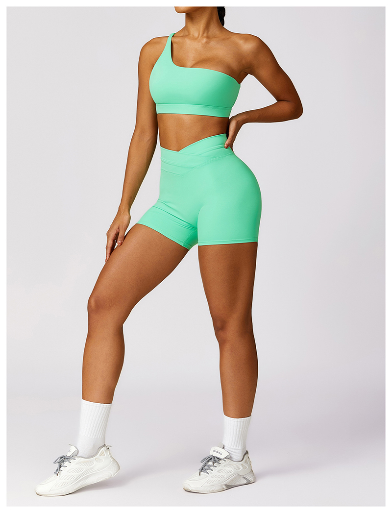 2 Piece Yoga Sets Quick Dry Woman Yoga Outfit Shorts One Shoulder Bras Sport Suit for Women Sportswear Fitness Gym Workout Sets