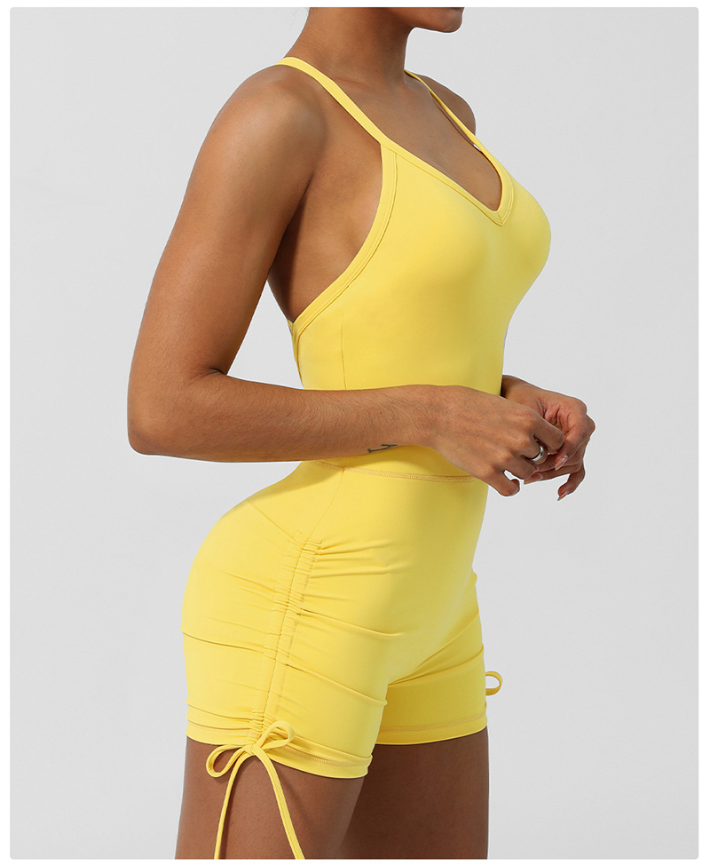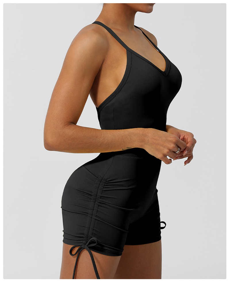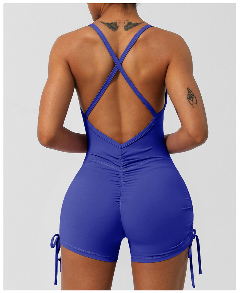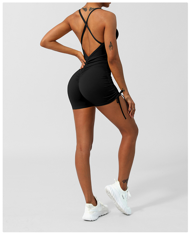 • Crossover Back Yoga Wear V Neckline Tight Shorts Sleeveless Jumpsuit Gym Breathable Quick Dry Exercise Clothes with Bra Pads