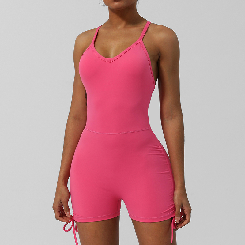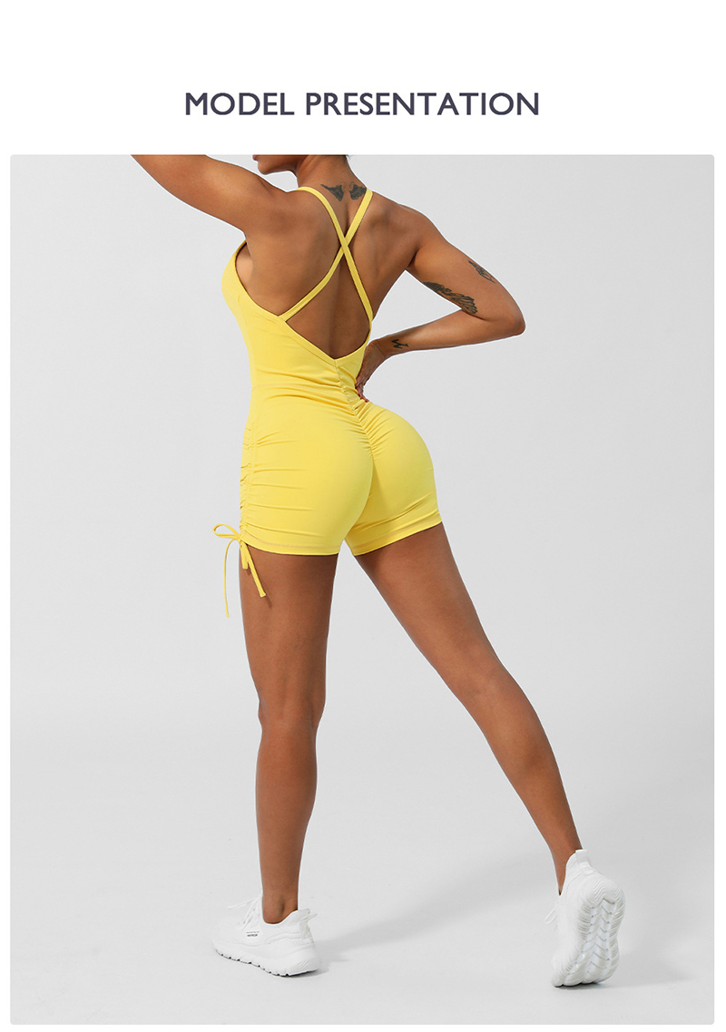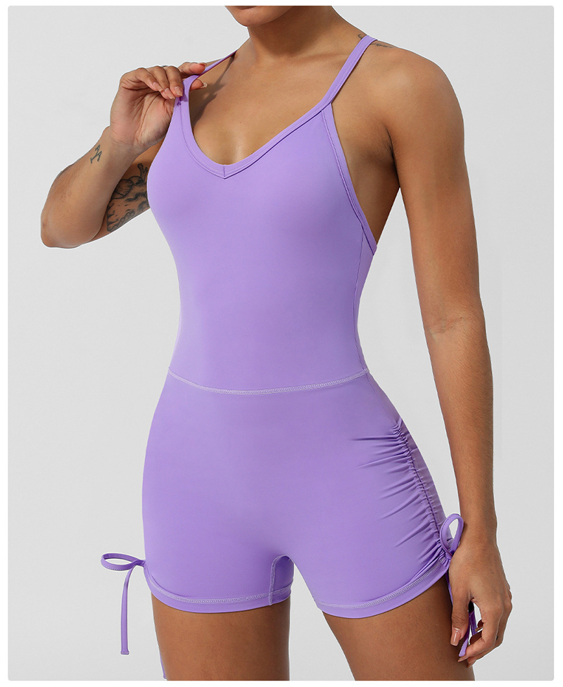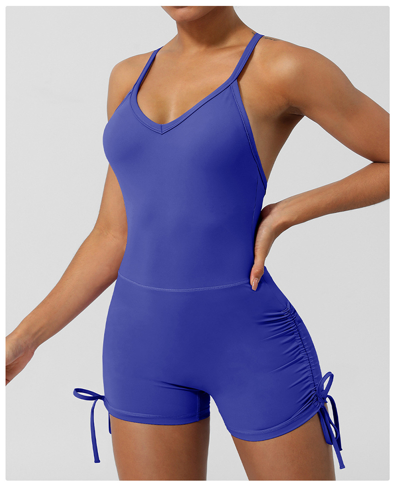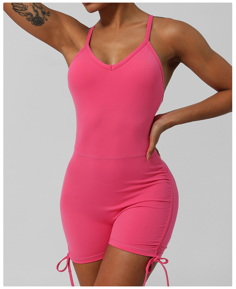 • Crossover Back Yoga Wear V Neckline Tight Shorts Sleeveless Jumpsuit Gym Breathable Quick Dry Exercise Clothes with Bra Pads