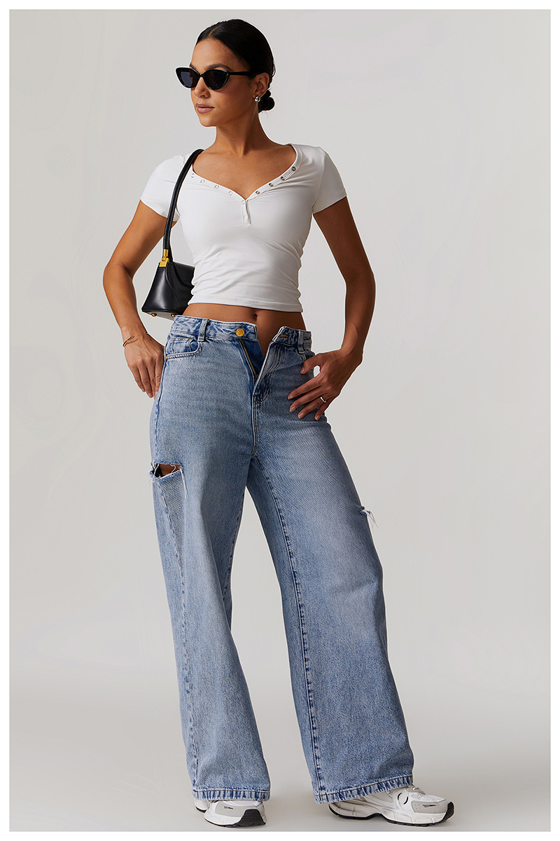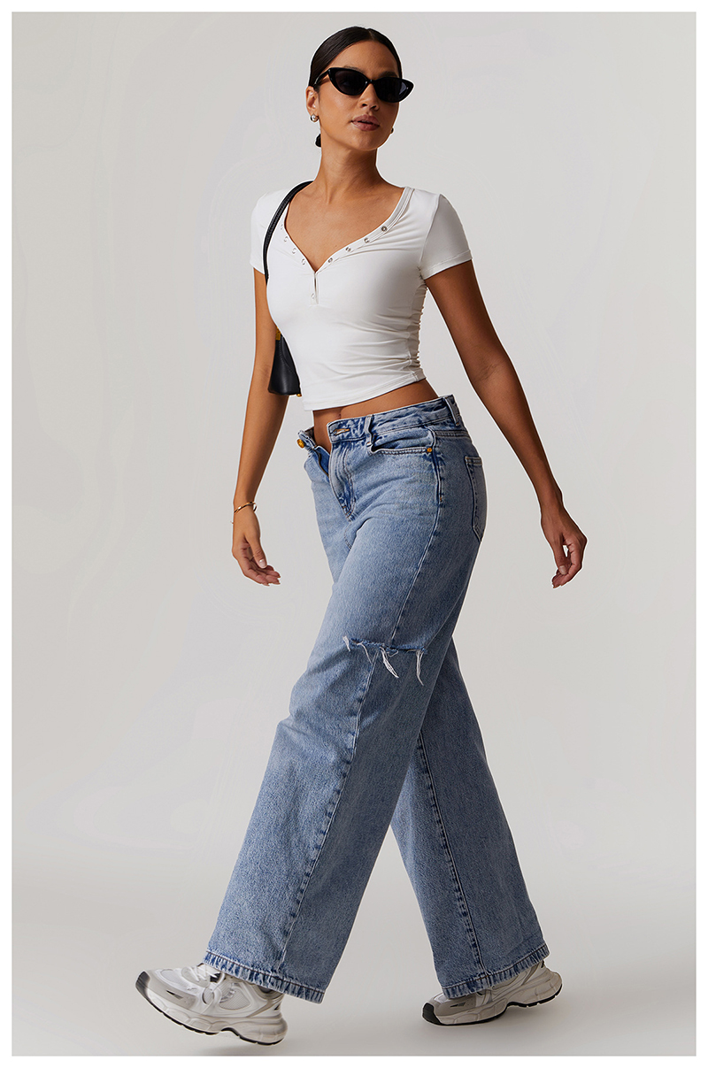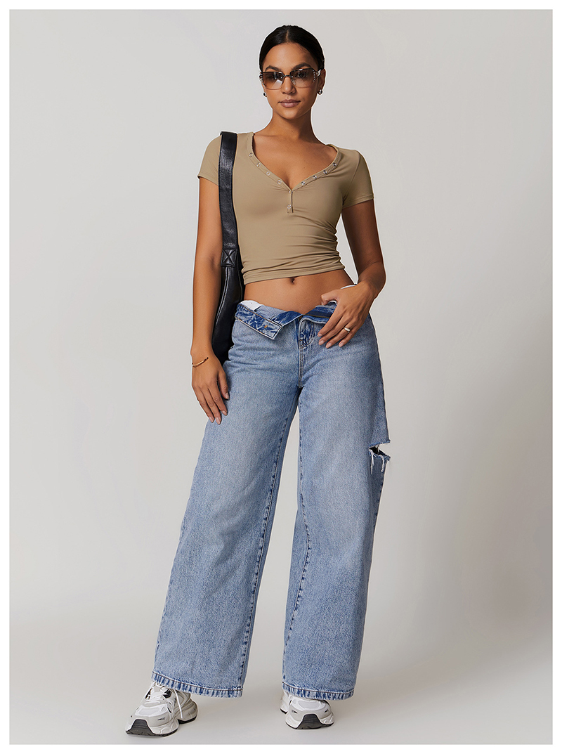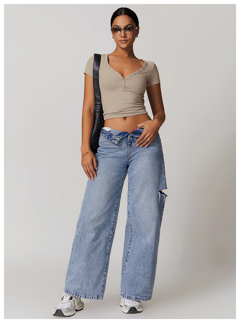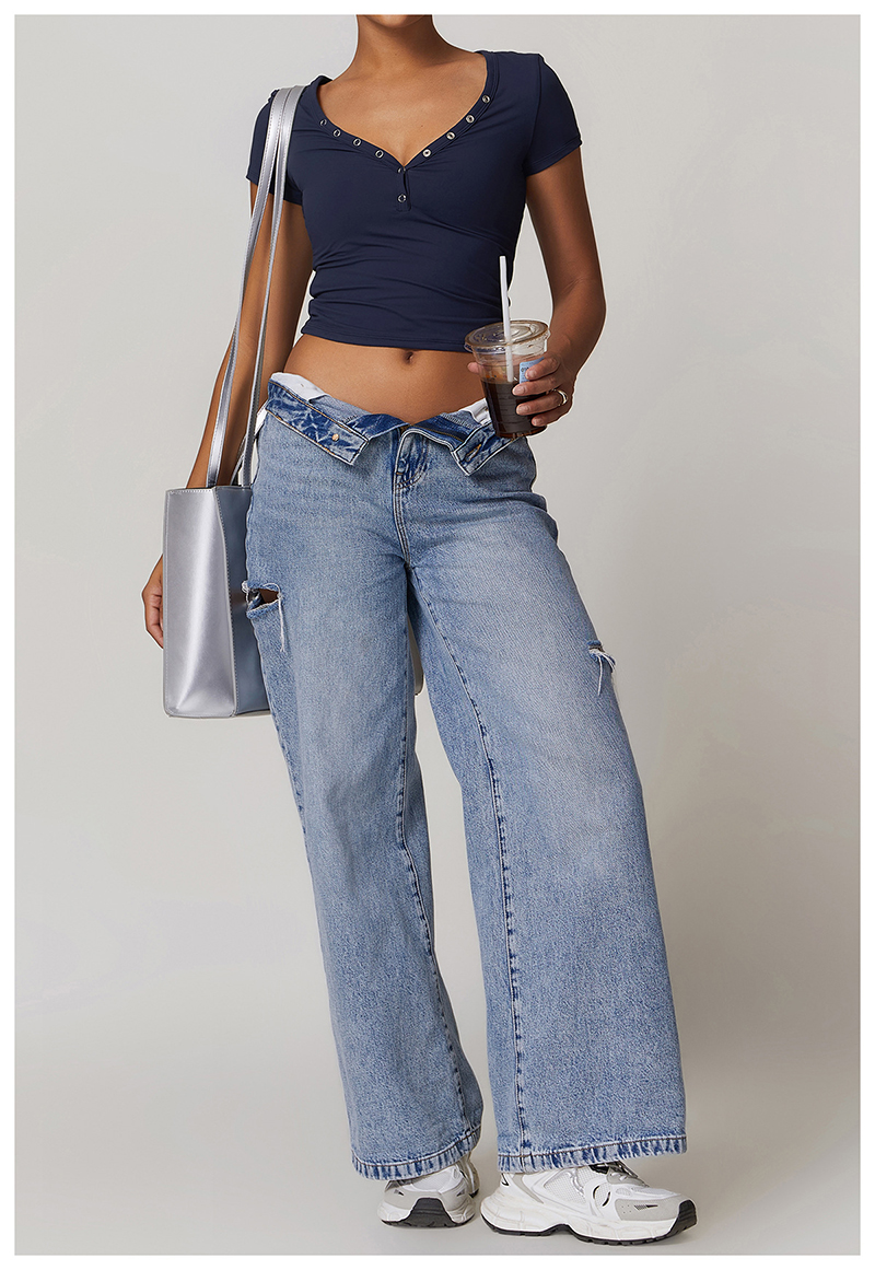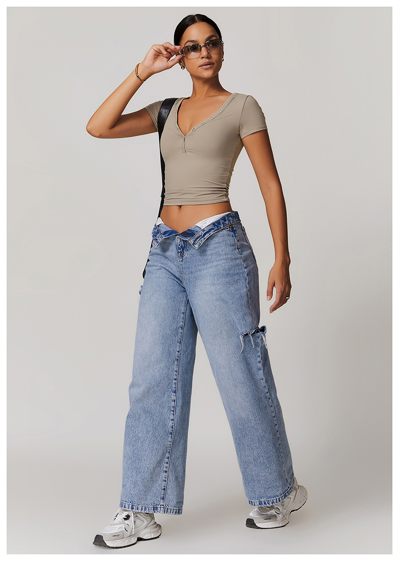 • Milled Tight Breathable Yoga Short Sleeve Women V Neckline Metal Buckle Design Running Sports Breathable Fitness T-shirt Tops