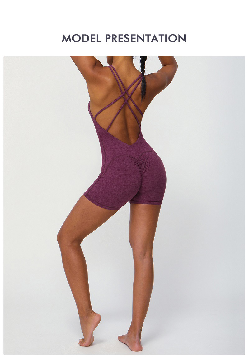 • New One-piece Cross Back Sports Yoga Jumpsuit M Word Lift Buttocks Slimming Clothing Gym Running Workout Fast Drying Sportswear