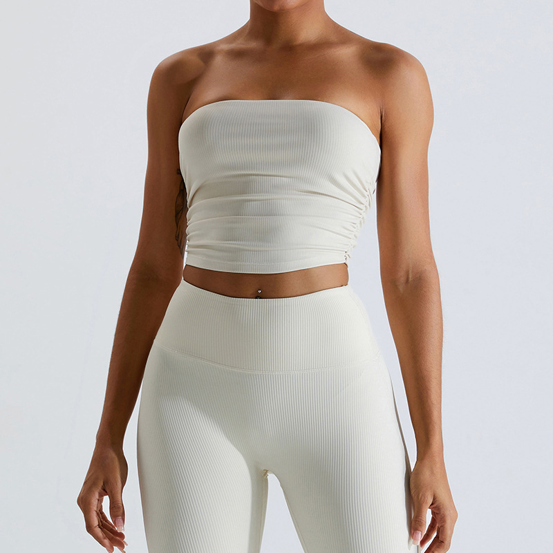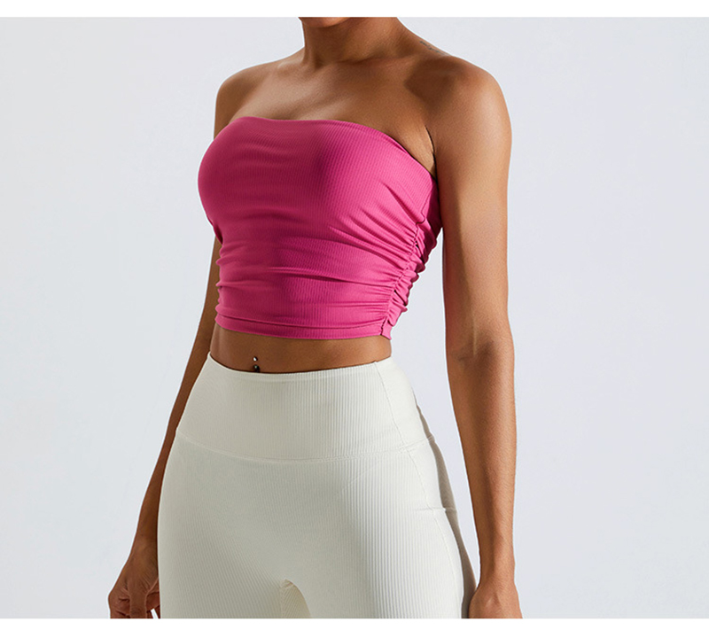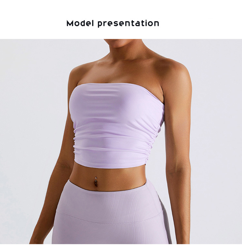 • New Wrap Yoga Wear Tops Women Threaded Pleated Solid Color Plunge Quick Dry Slim Sports Underwear Gym Running Fitness Clothing