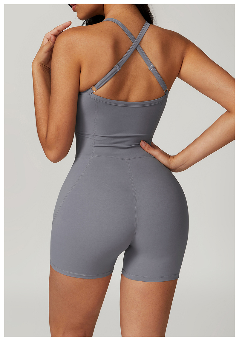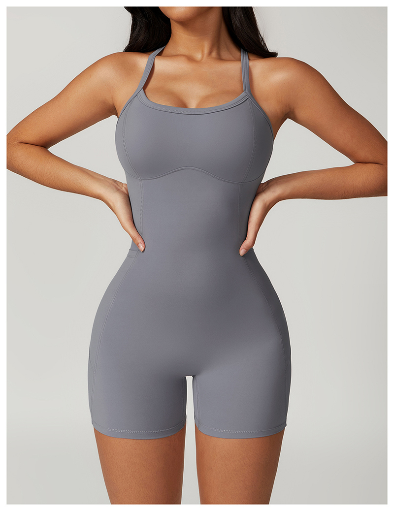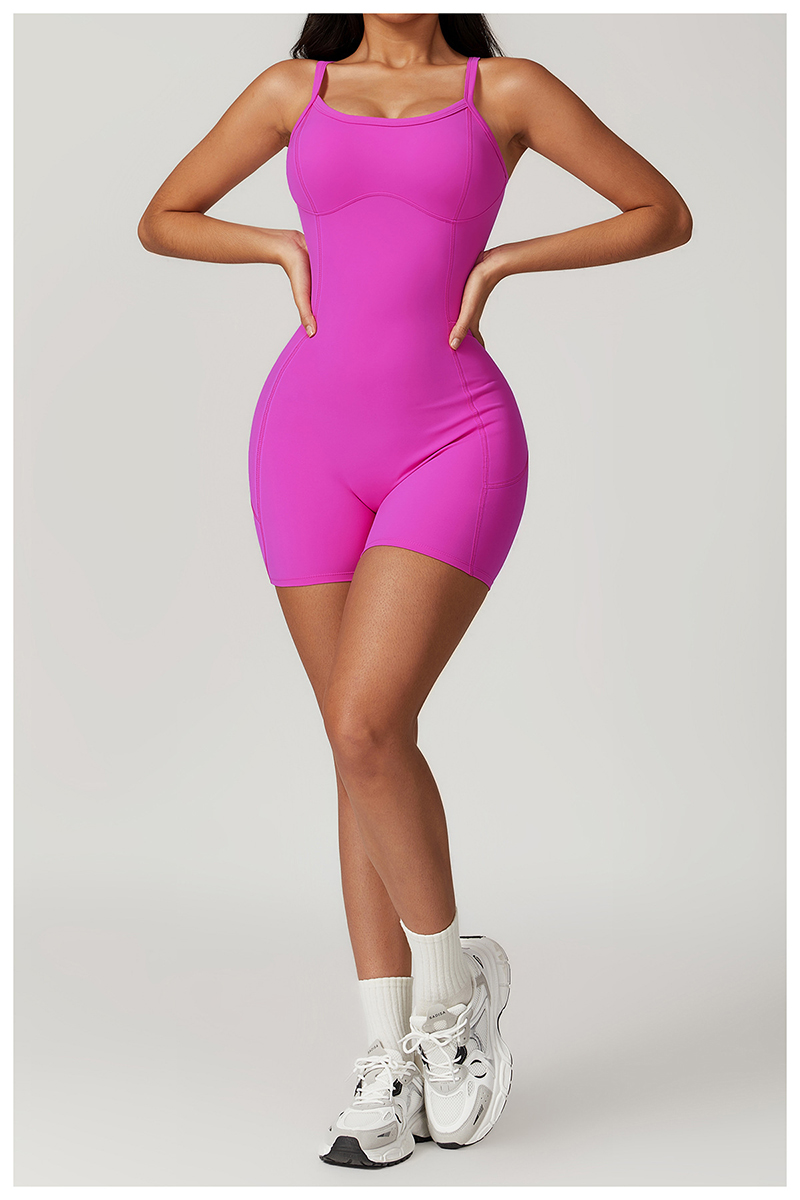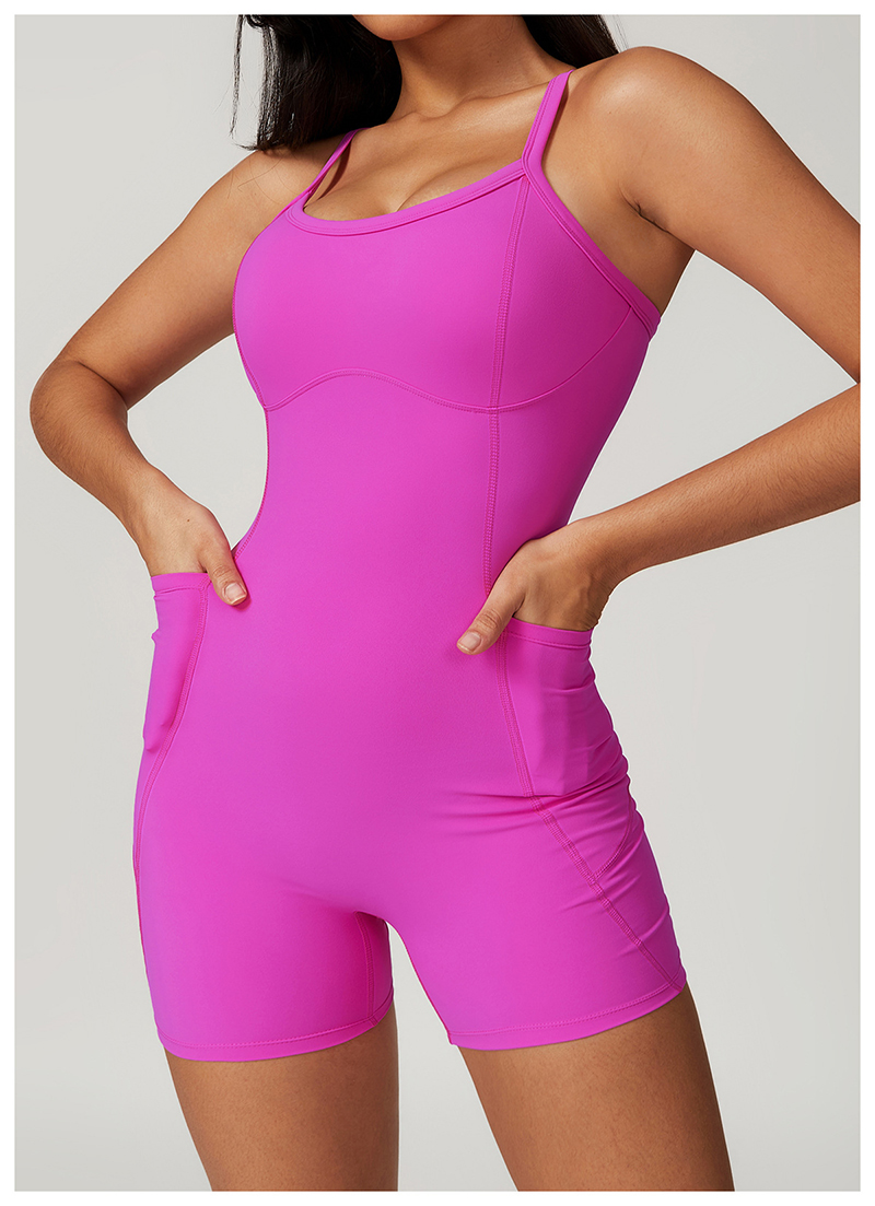 • Pockets Casual Tight Body Beautiful Back Yoga Jumpsuit with Chest Pad Quick Dry Breathable Gym Senseless Sports Fitness Clothing