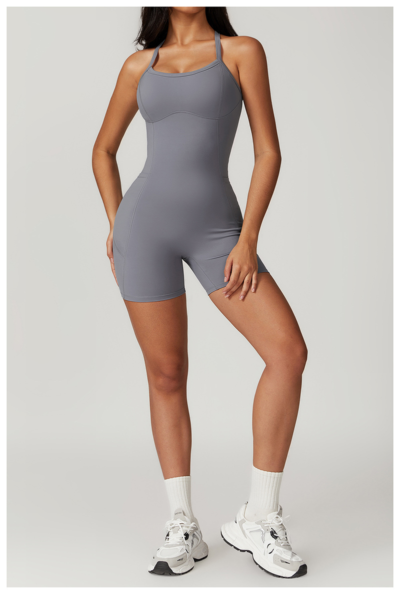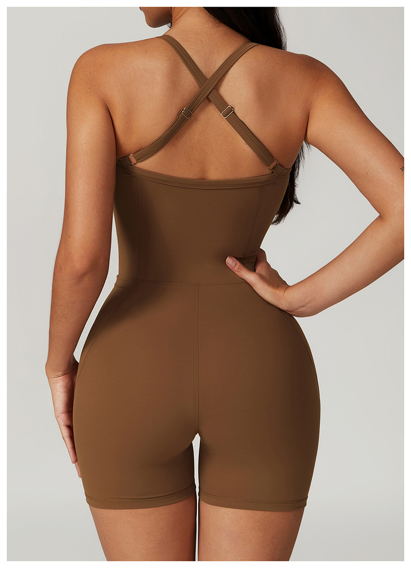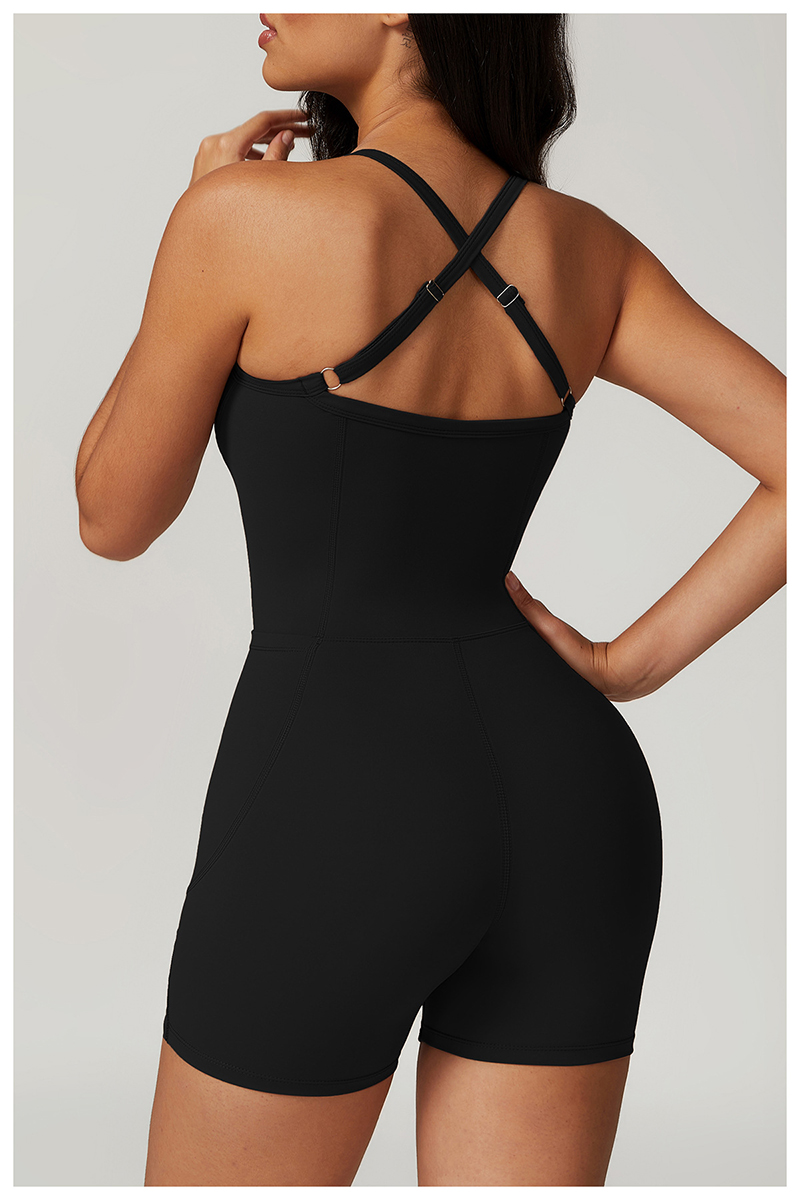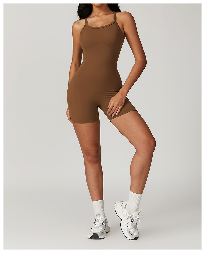 • Pockets Casual Tight Body Beautiful Back Yoga Jumpsuit with Chest Pad Quick Dry Breathable Gym Senseless Sports Fitness Clothing