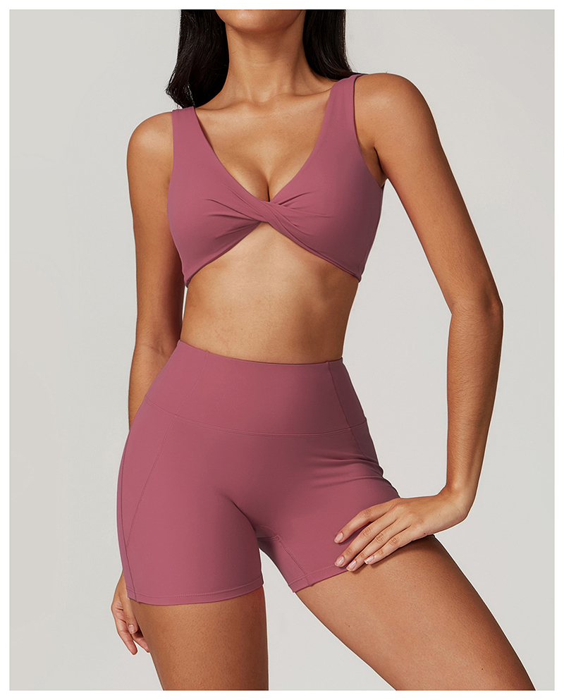 Solid Colour Yoga Bra Comfortable Senseless Cross Back Outer Wear Sexy Quick Drying Sports Fitness Tight Yoga Workout Tops Women