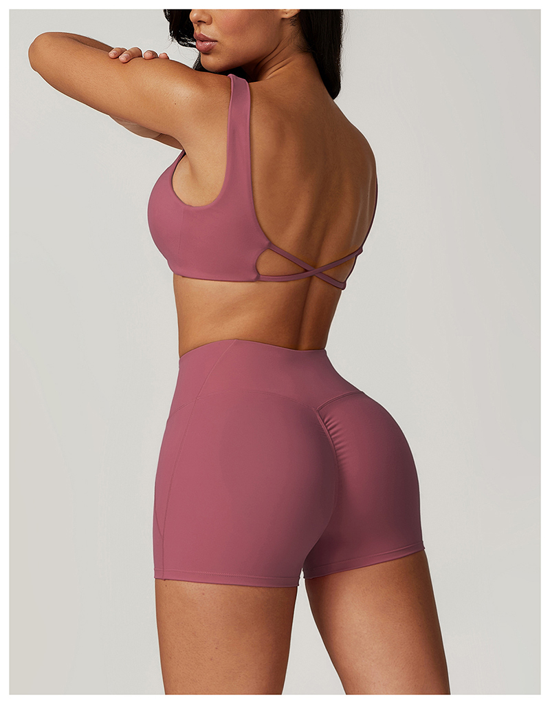 • Solid Colour Yoga Bra Comfortable Senseless Cross Back Outer Wear Sexy Quick Drying Sports Fitness Tight Yoga Workout Tops Women