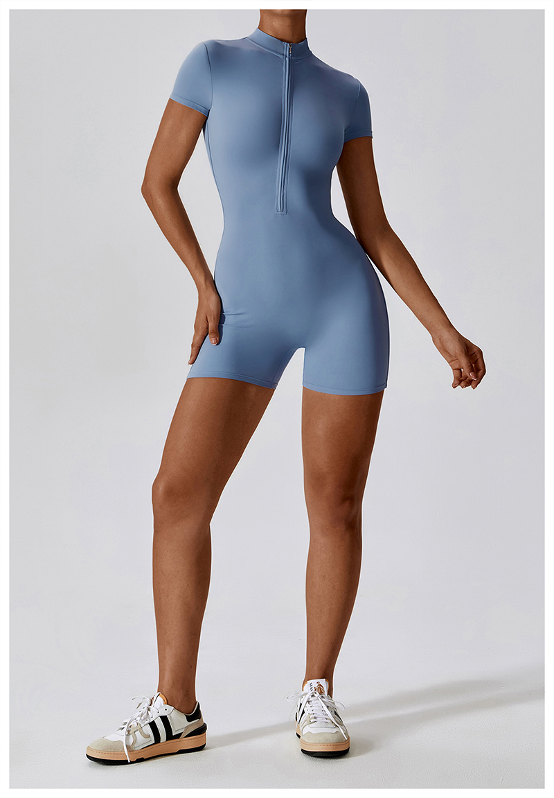 • Summer Zipper Short Sleeve Yoga Bodysuit Women Dance Fitness Tight Exercise Bodysuit Running Cycling Quick Dry Fitness Clothing