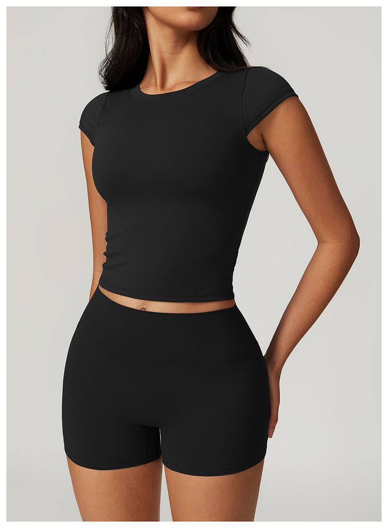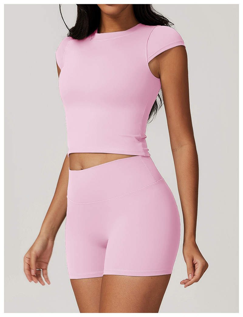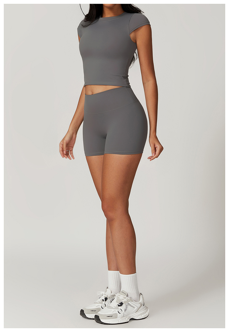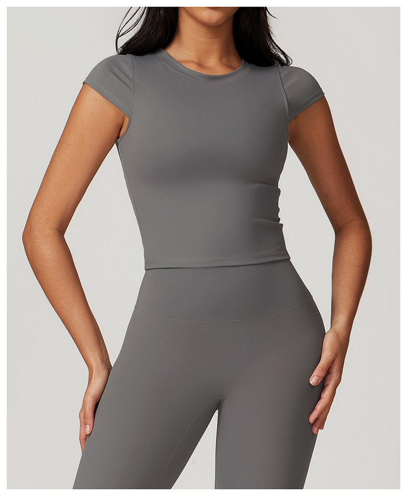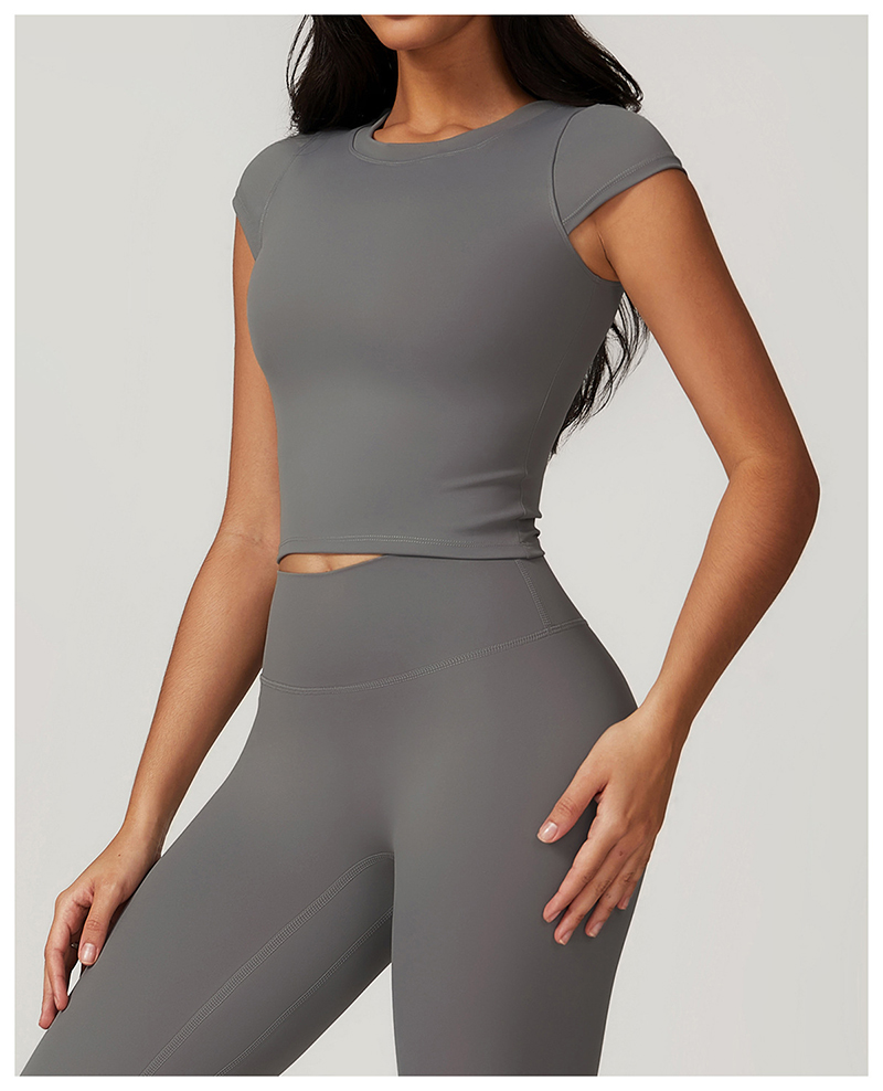 • Tight Fast-drying Small Fly Sleeve Yoga Short-sleeved Sports Fitness T-shirt Top Outside The Casual Running Yoga Clothing Female
