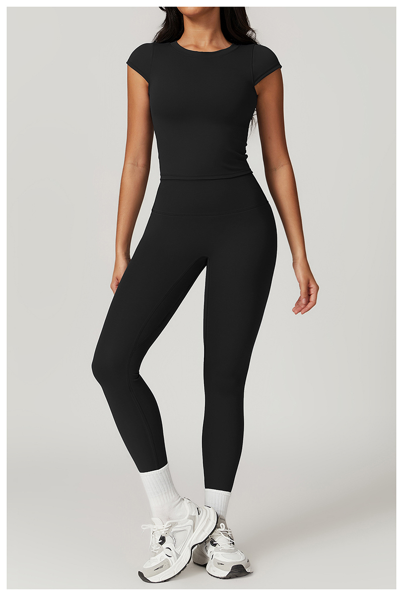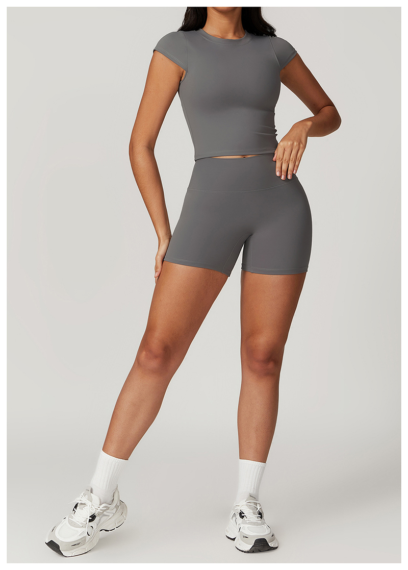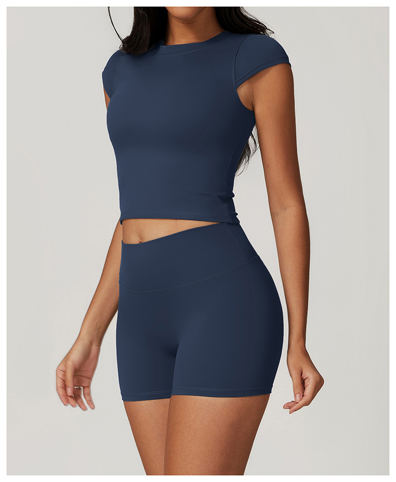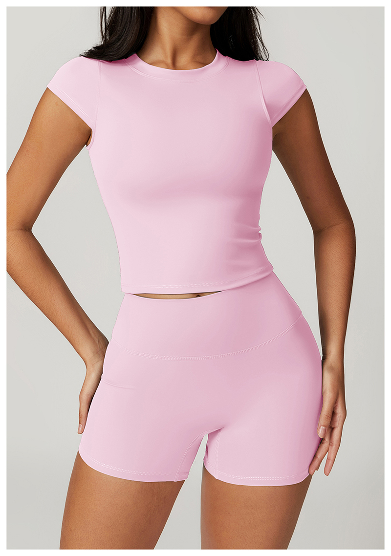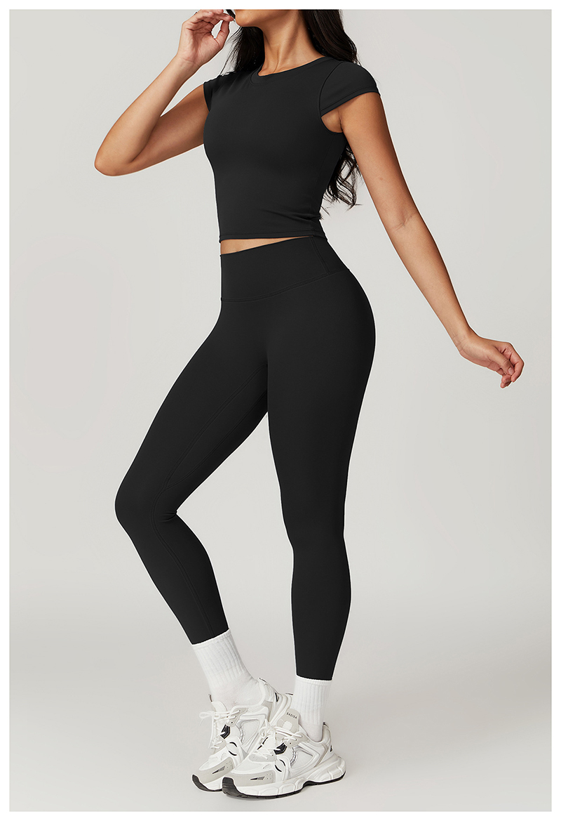 • Tight Fast-drying Small Fly Sleeve Yoga Short-sleeved Sports Fitness T-shirt Top Outside The Casual Running Yoga Clothing Female