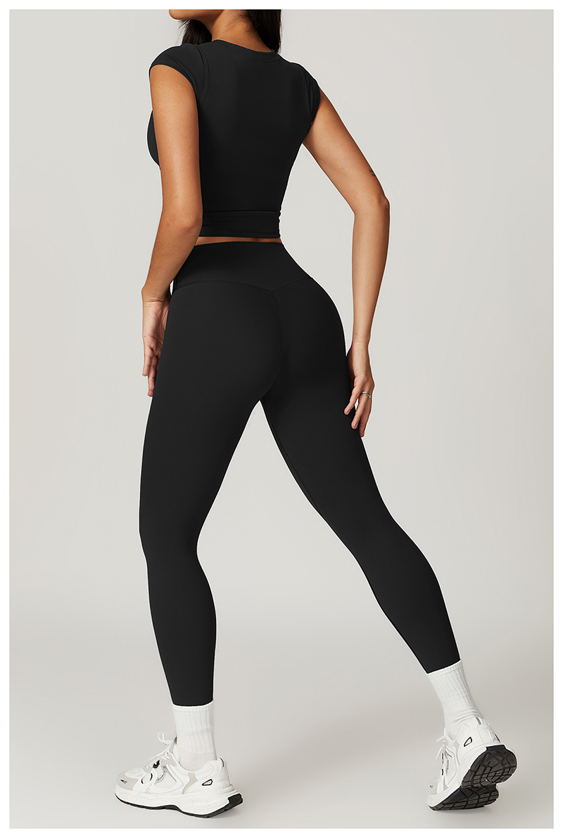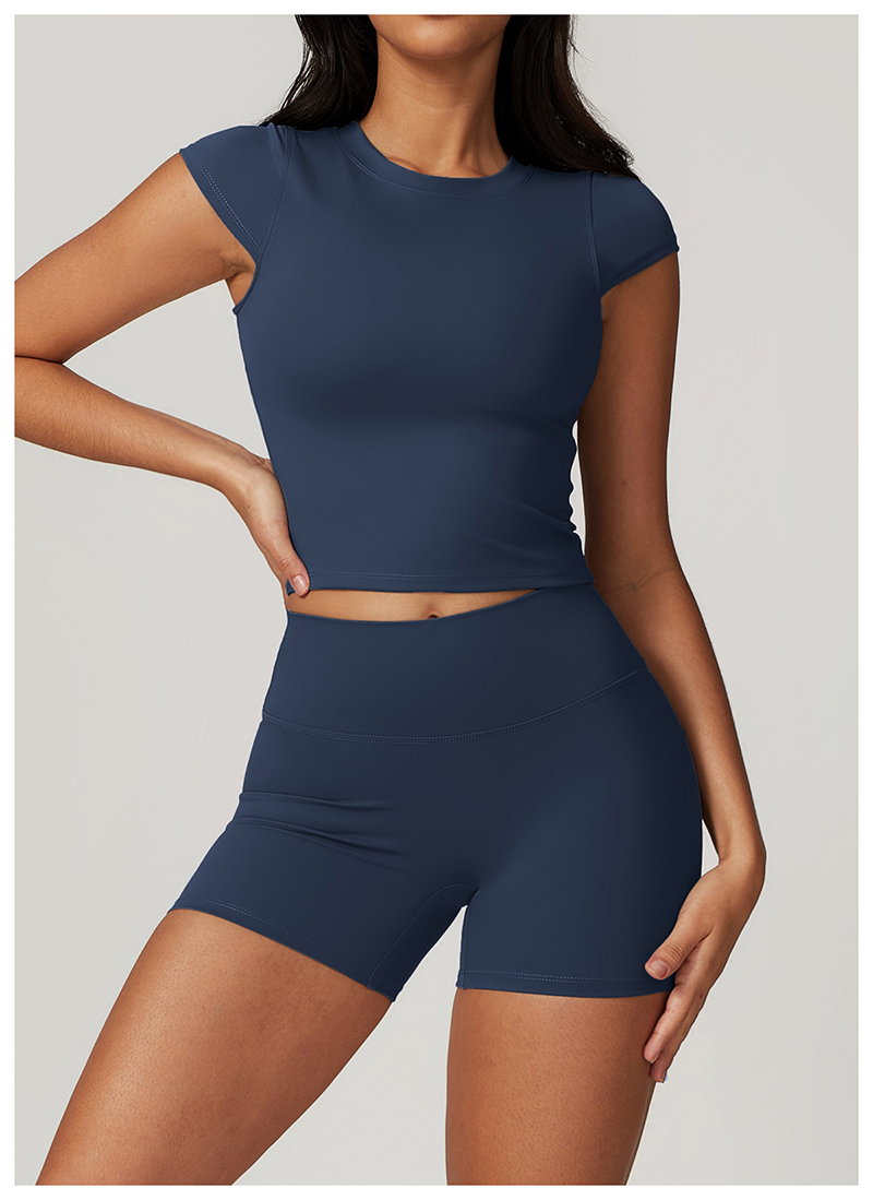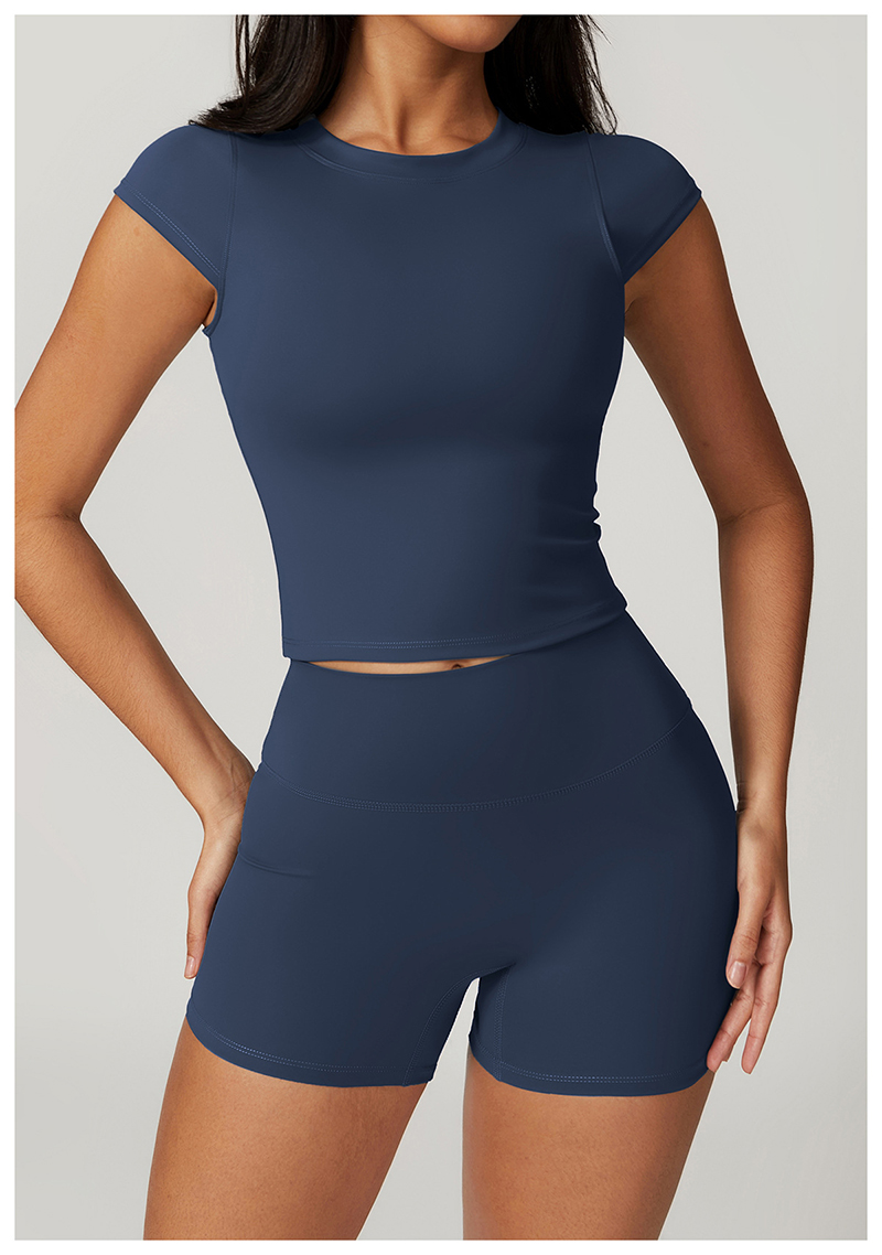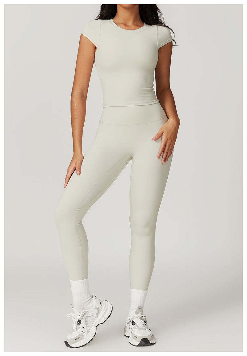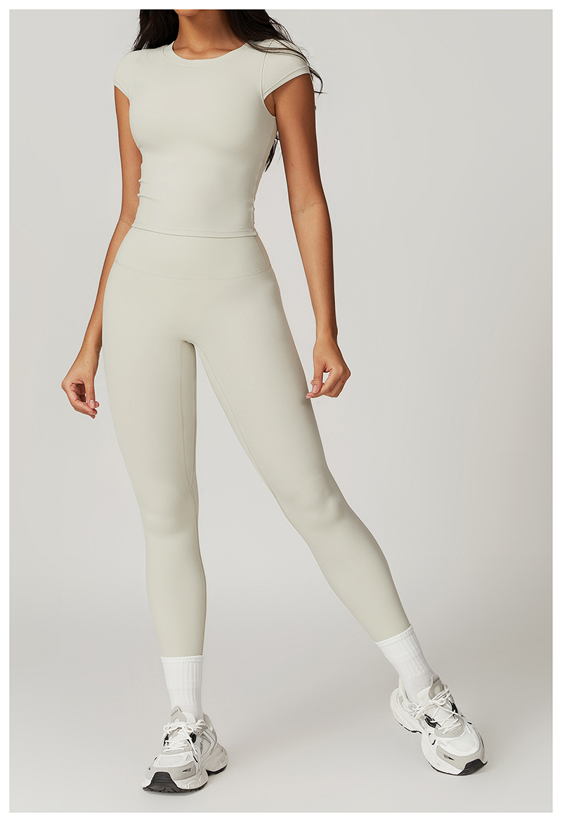 • Tight Fast-drying Small Fly Sleeve Yoga Short-sleeved Sports Fitness T-shirt Top Outside The Casual Running Yoga Clothing Female