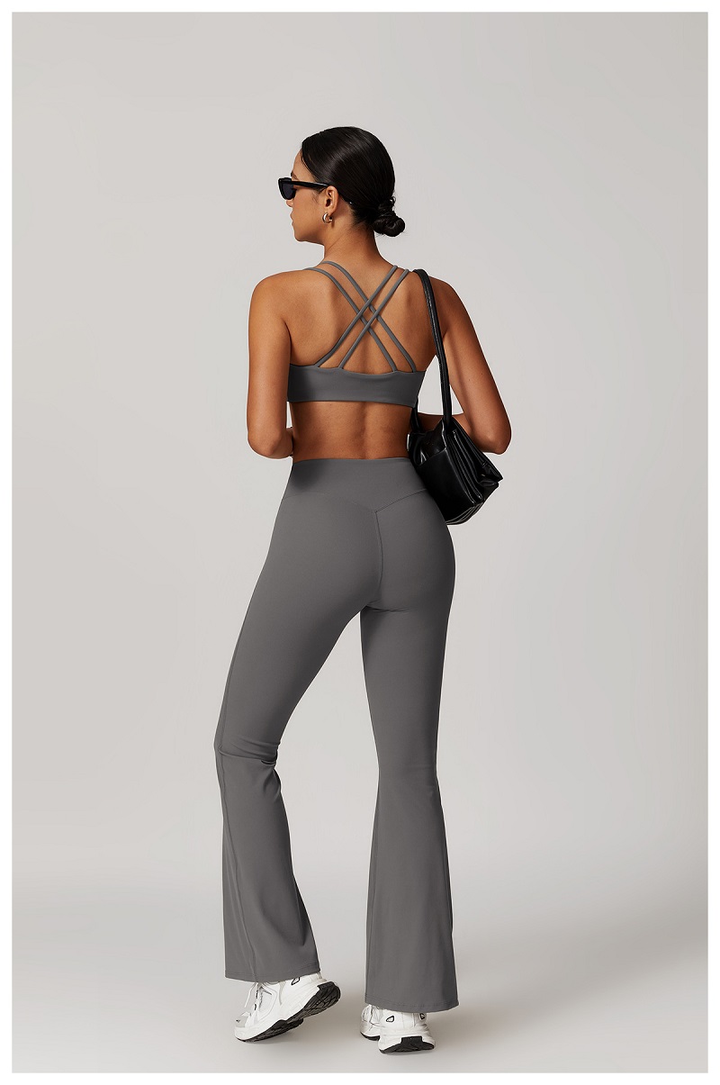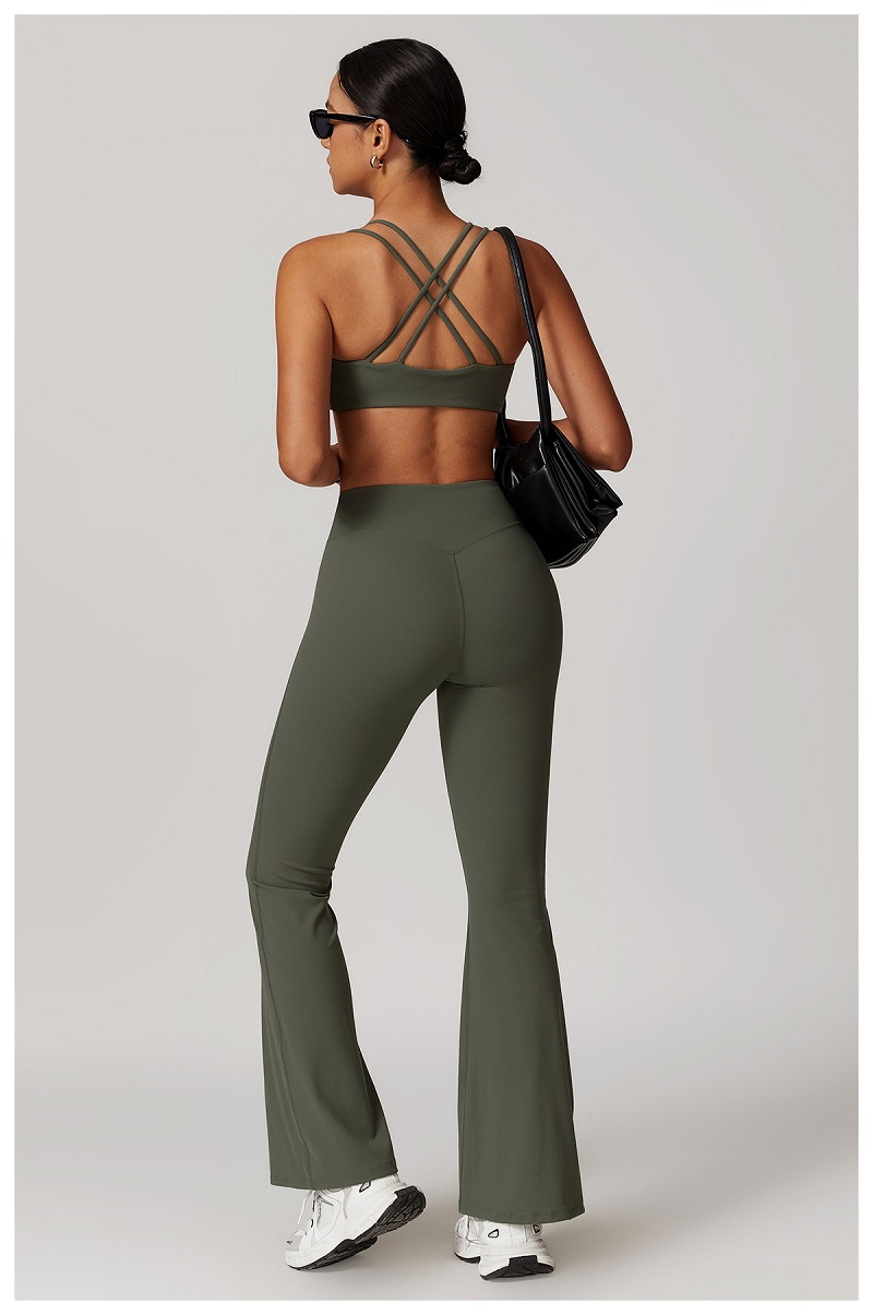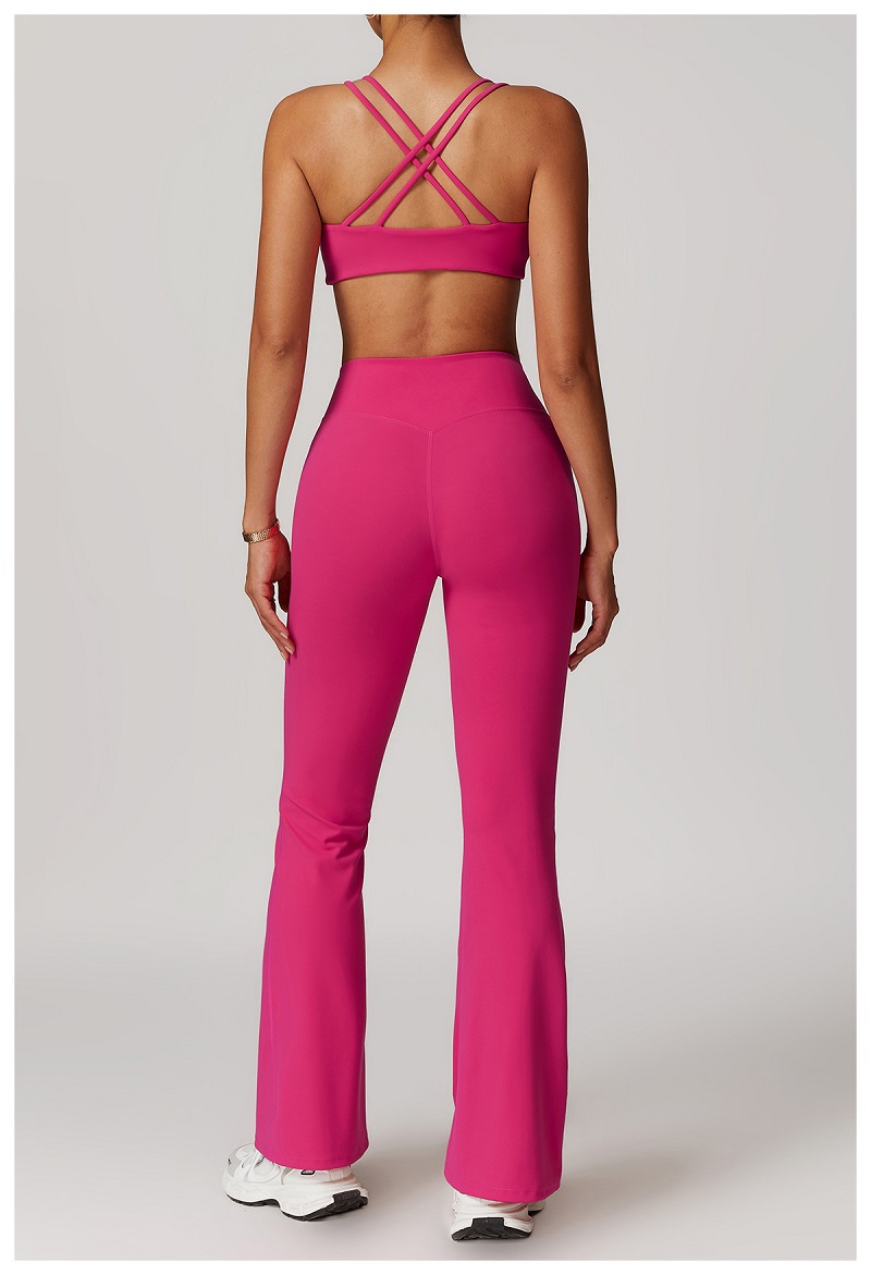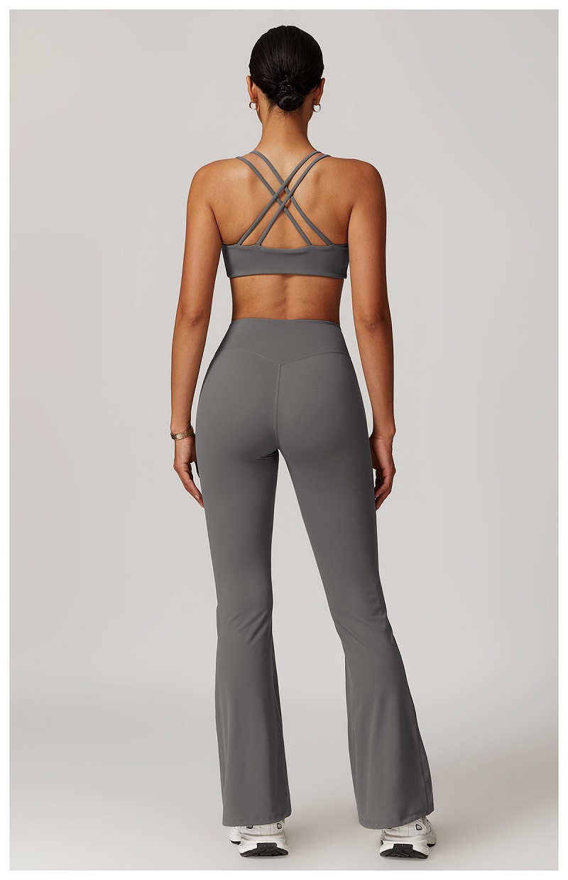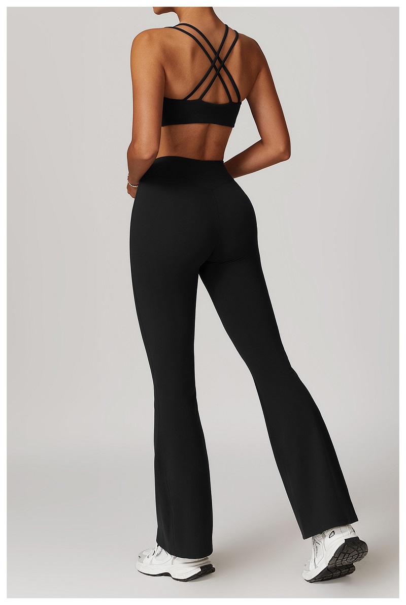 • Tight Yoga Suit Women Cross Back Strapless Exercise Flared Pants Set High Waisted Lift Hip Quick Dry Training Fitness Clothing