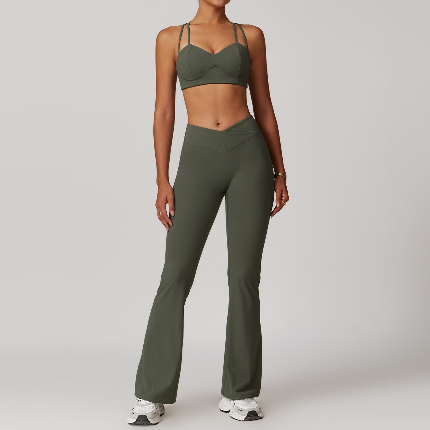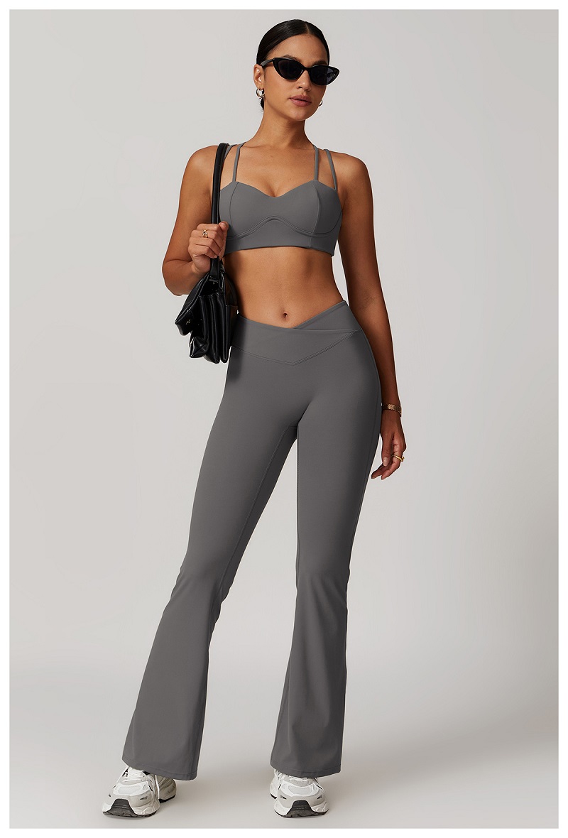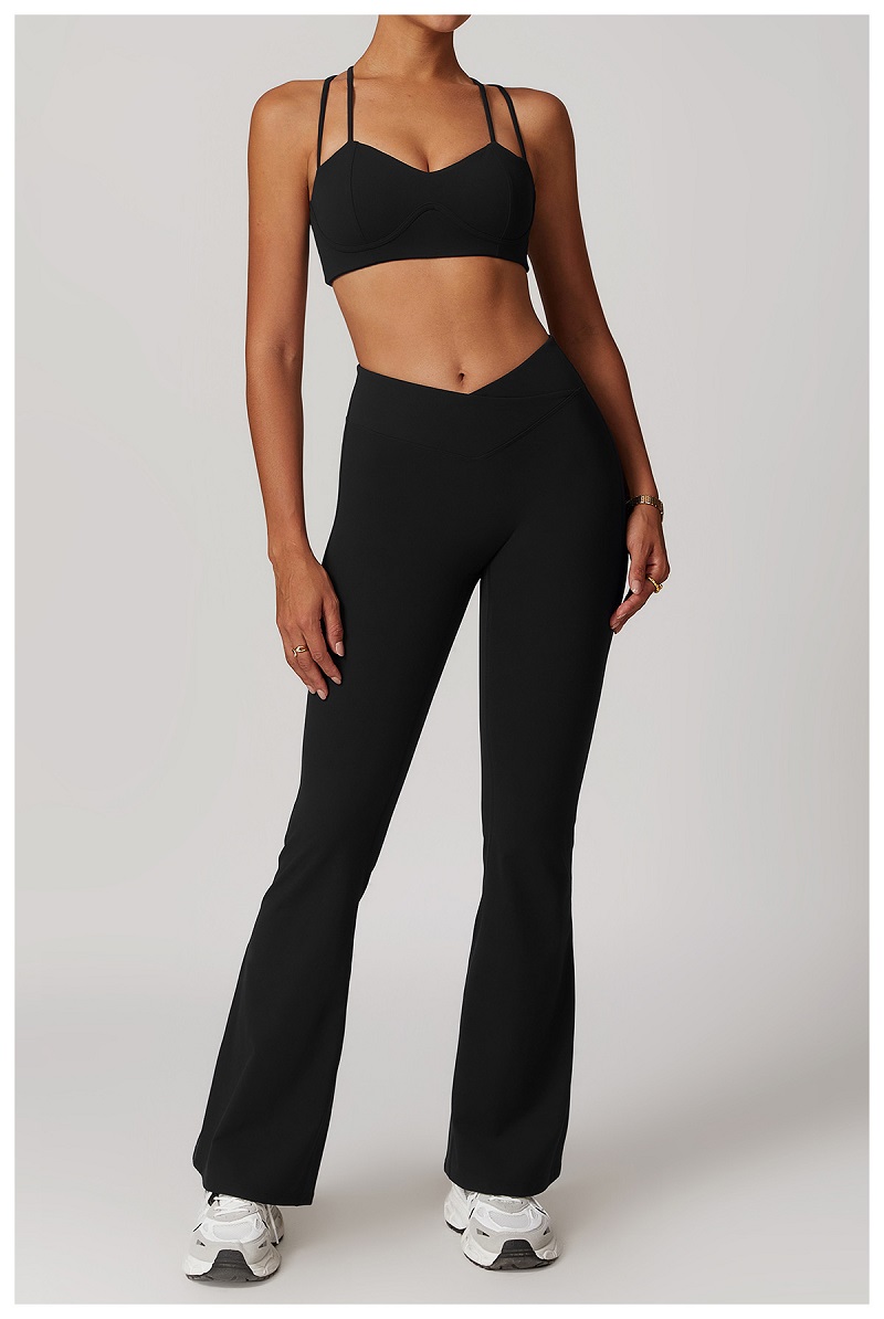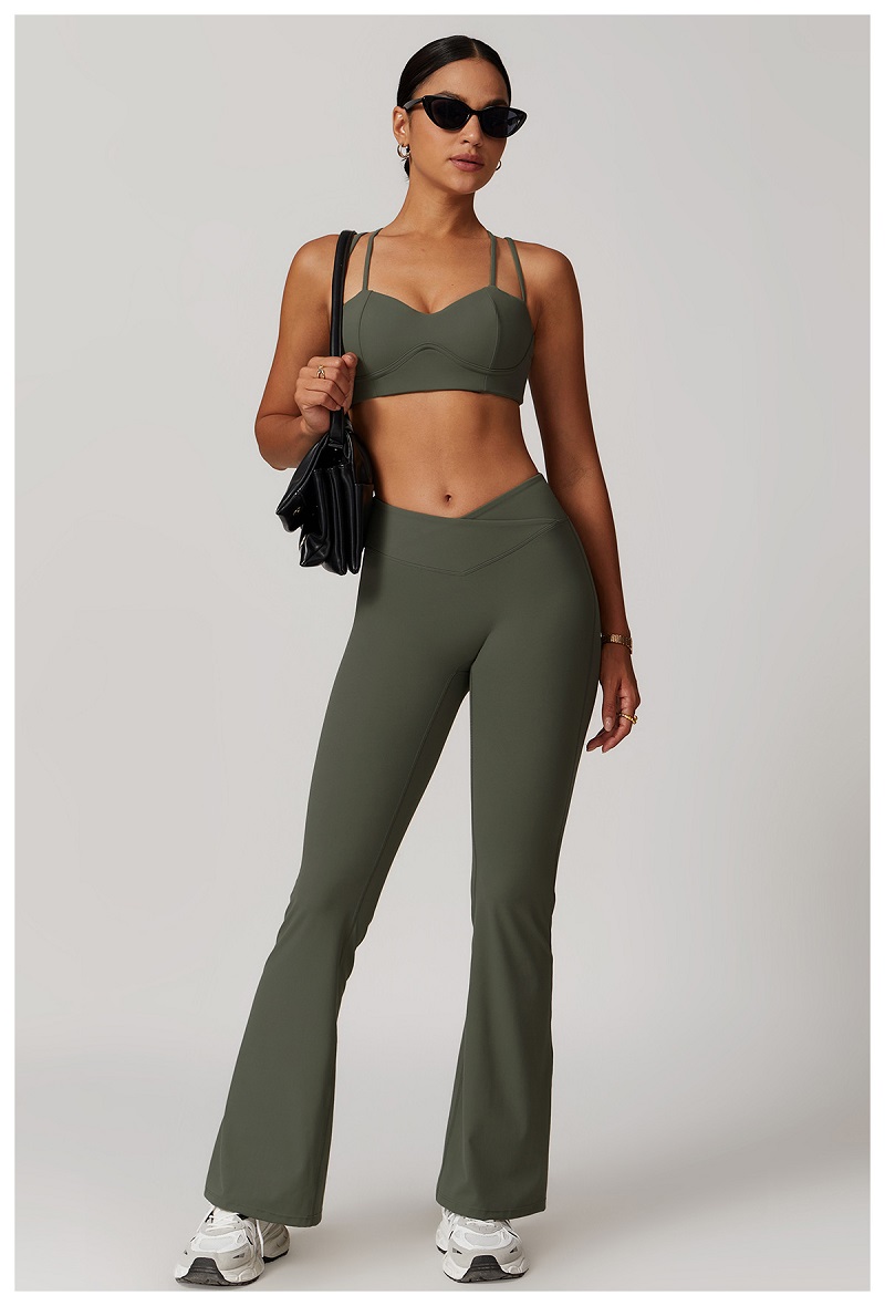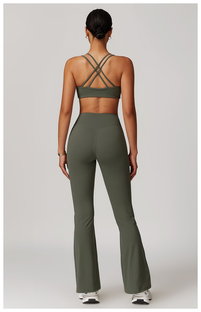 • Tight Yoga Suit Women Cross Back Strapless Exercise Flared Pants Set High Waisted Lift Hip Quick Dry Training Fitness Clothing