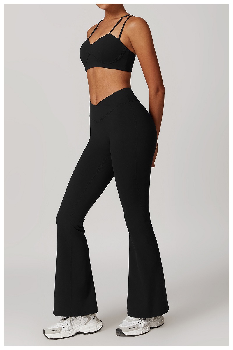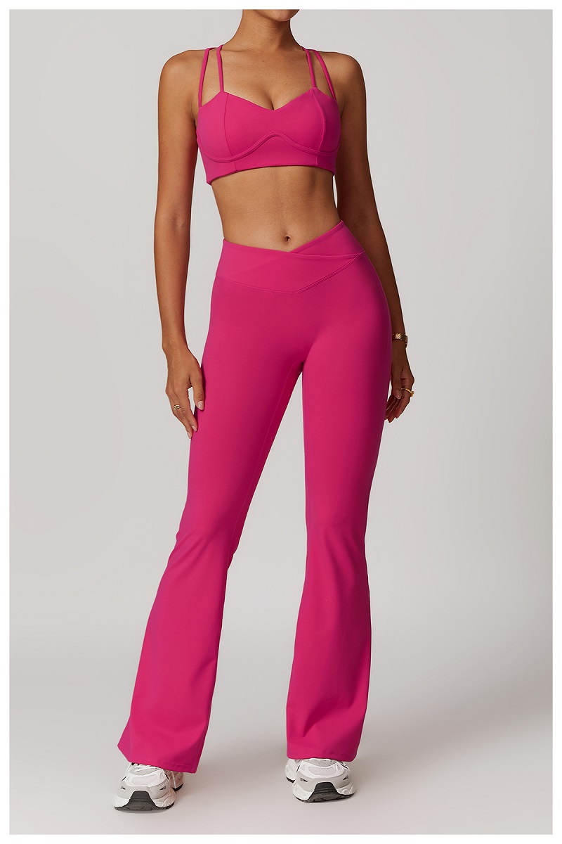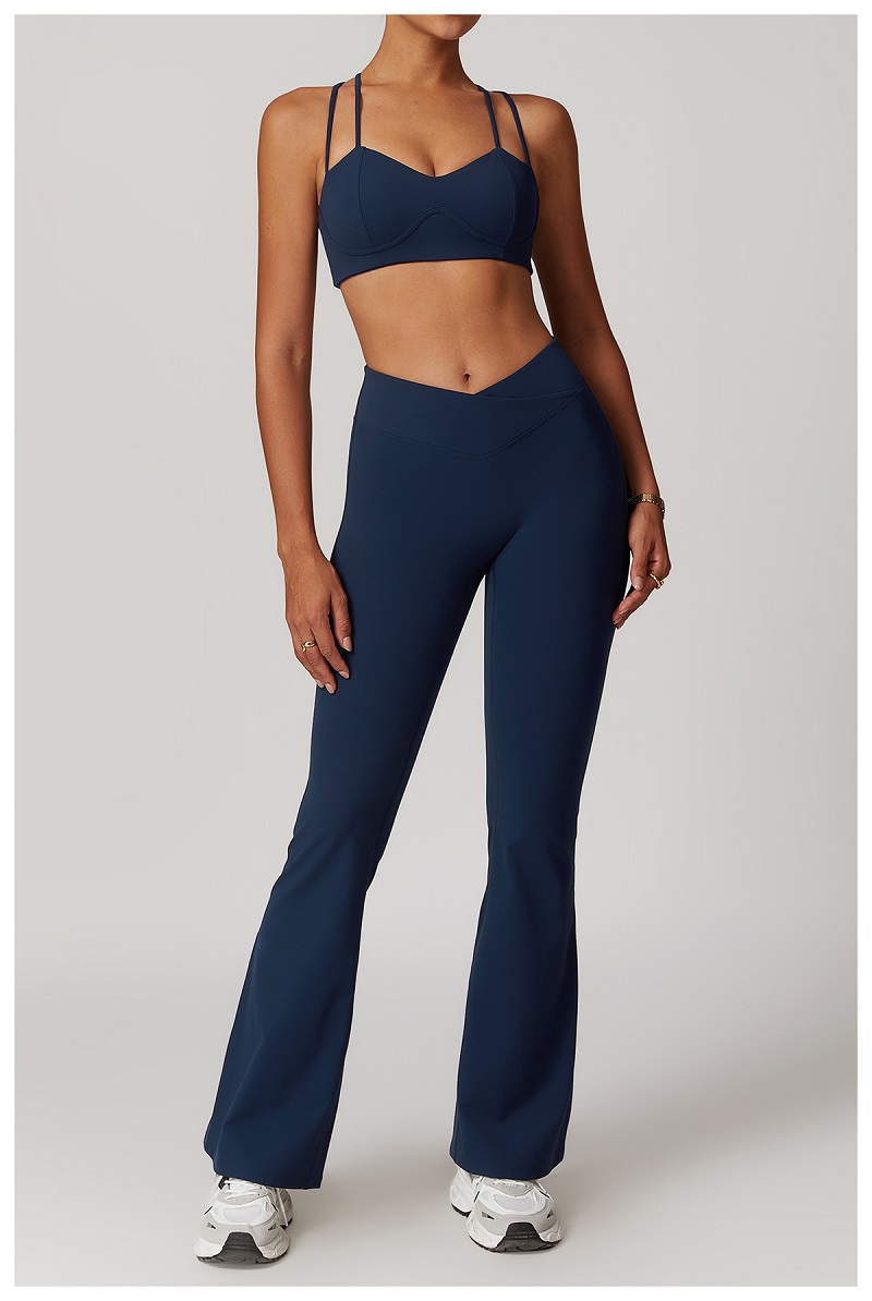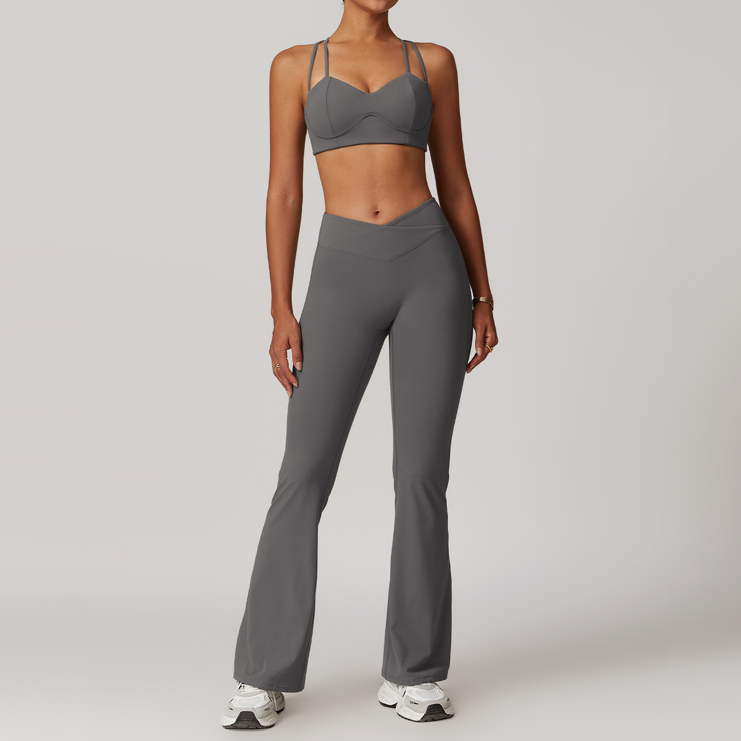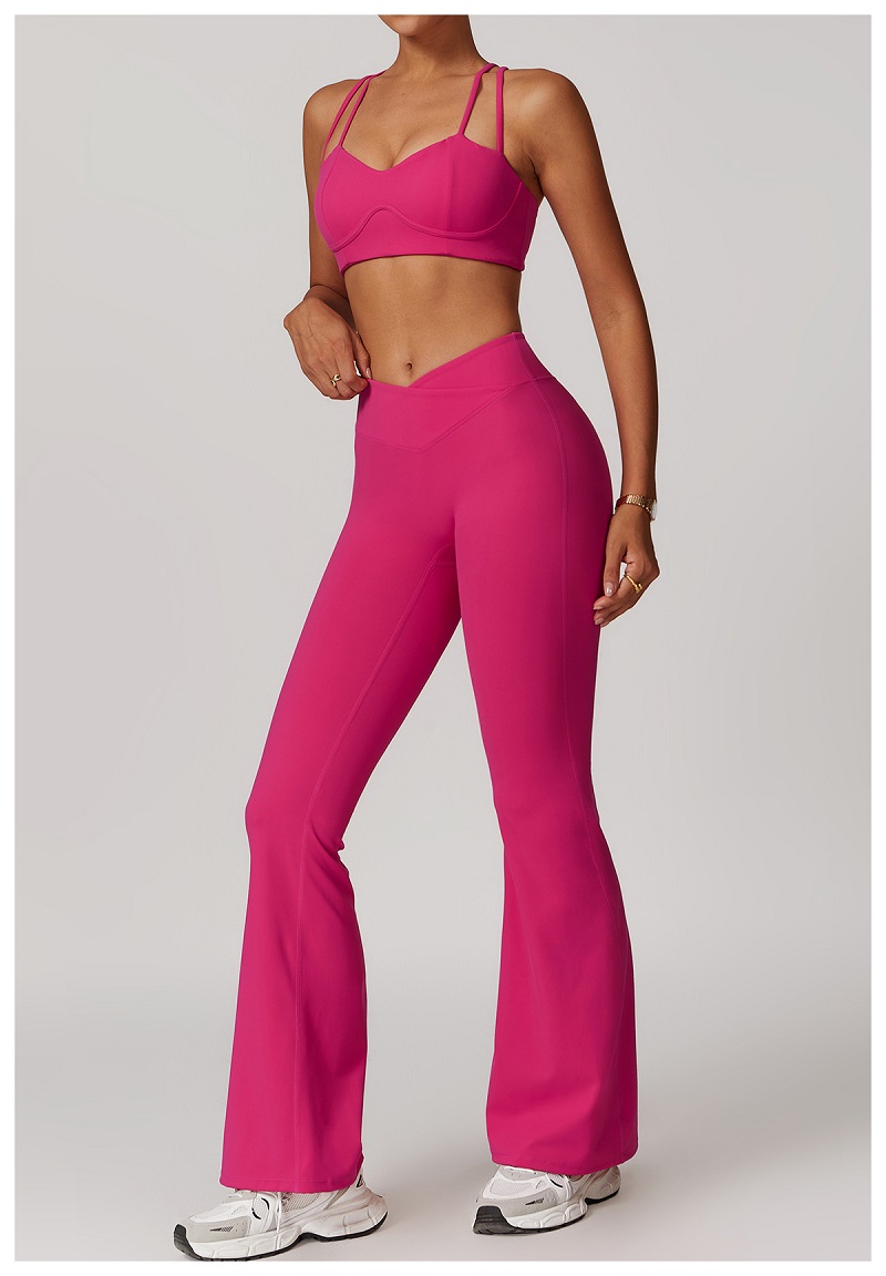 • Tight Yoga Suit Women Cross Back Strapless Exercise Flared Pants Set High Waisted Lift Hip Quick Dry Training Fitness Clothing