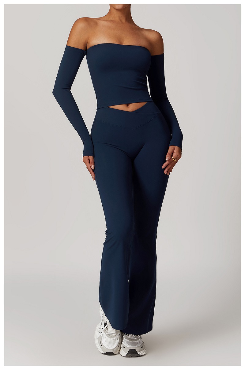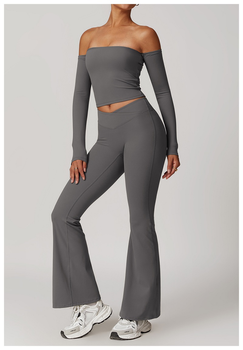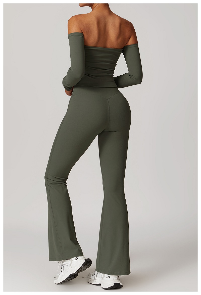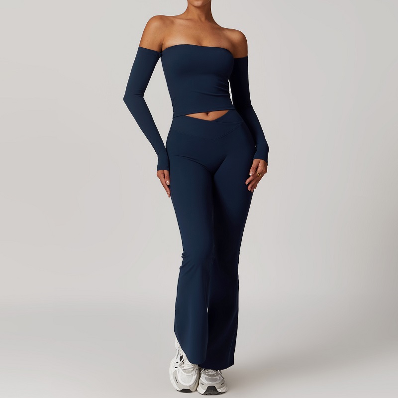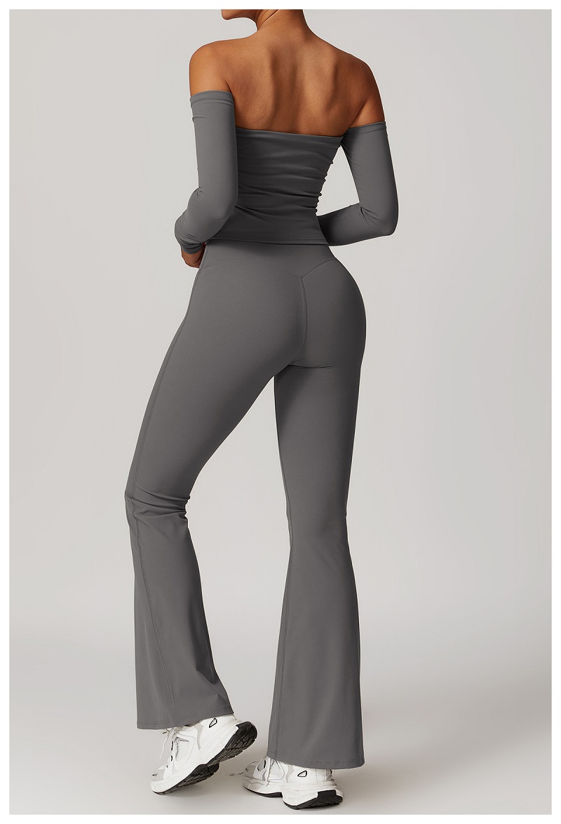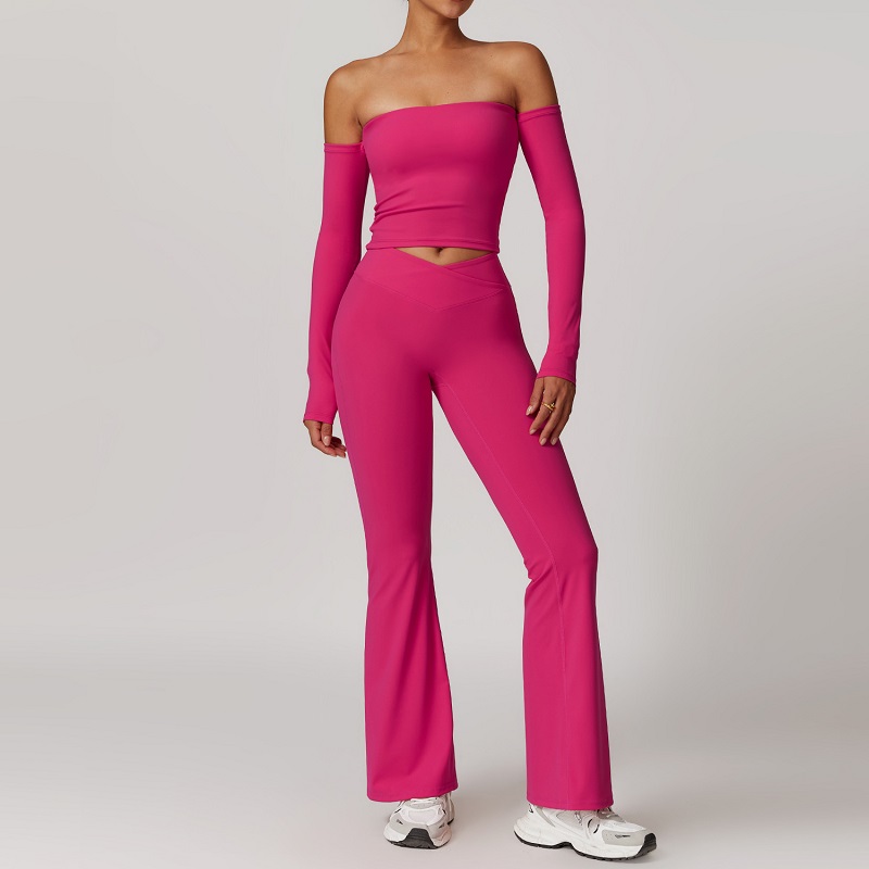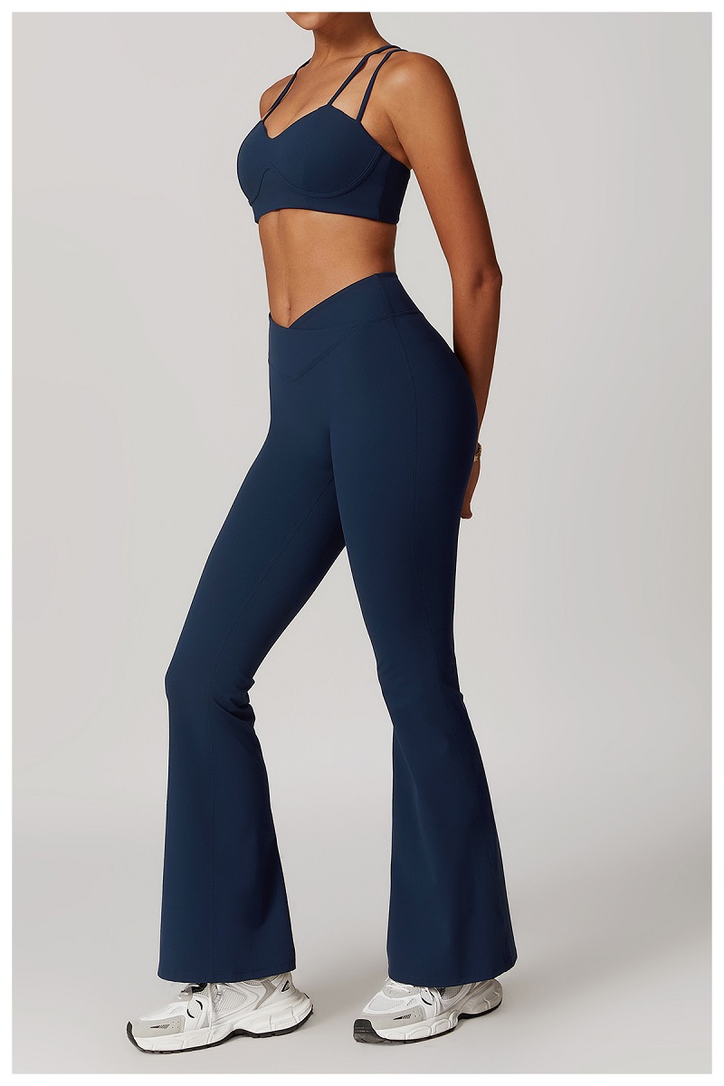 • Tight Yoga Suit Women Cross Back Strapless Exercise Flared Pants Set High Waisted Lift Hip Quick Dry Training Fitness Clothing