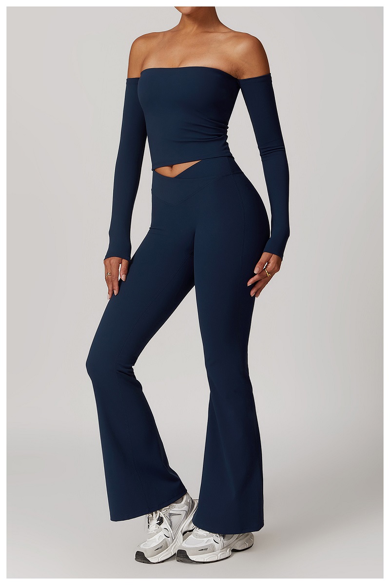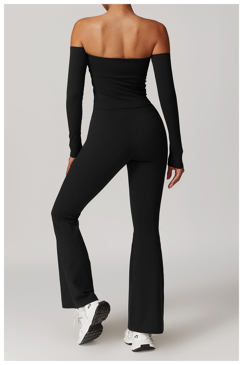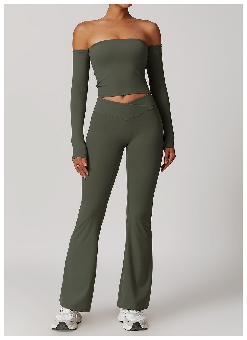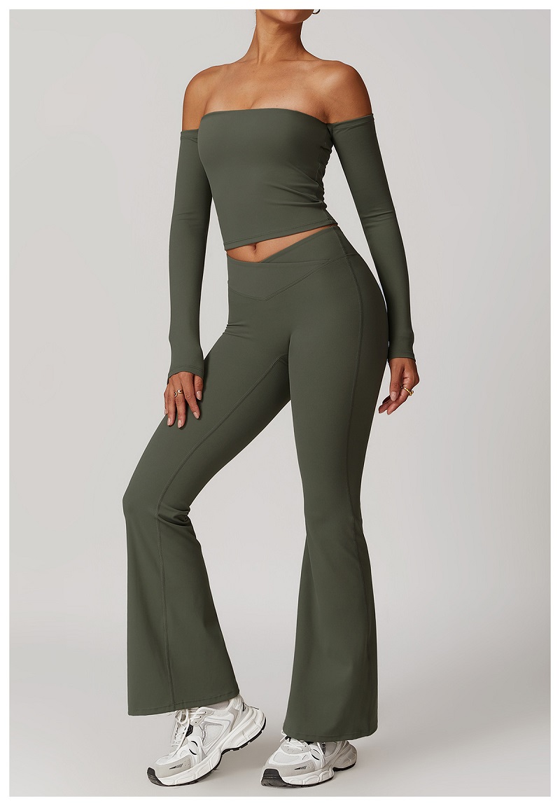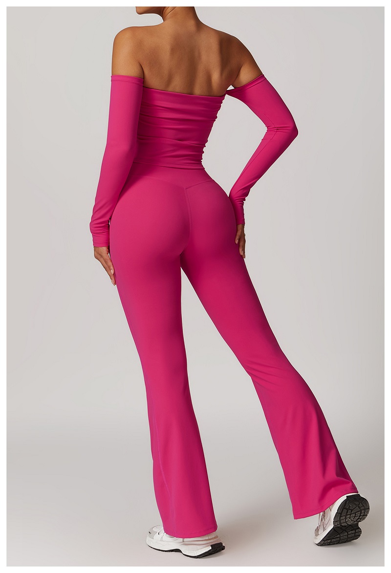 • Tight Yoga Suit Women Cross Back Strapless Exercise Flared Pants Set High Waisted Lift Hip Quick Dry Training Fitness Clothing