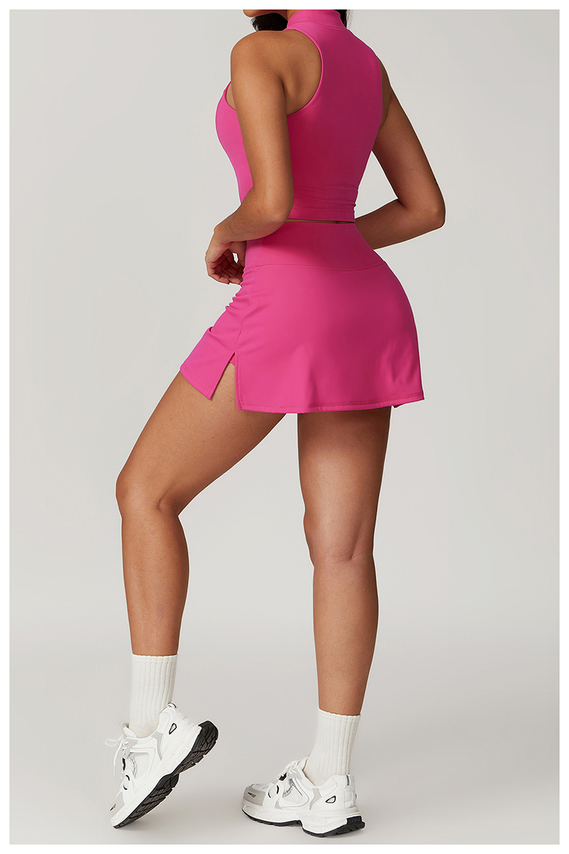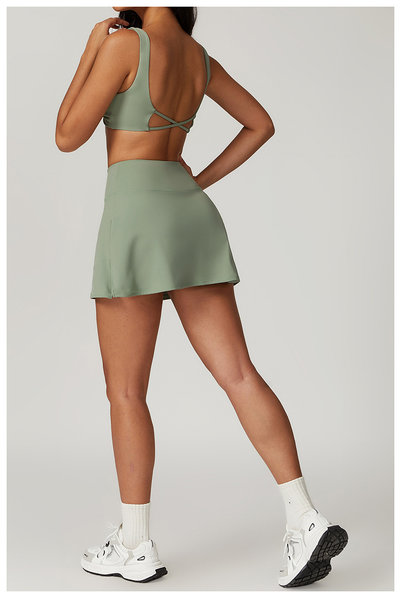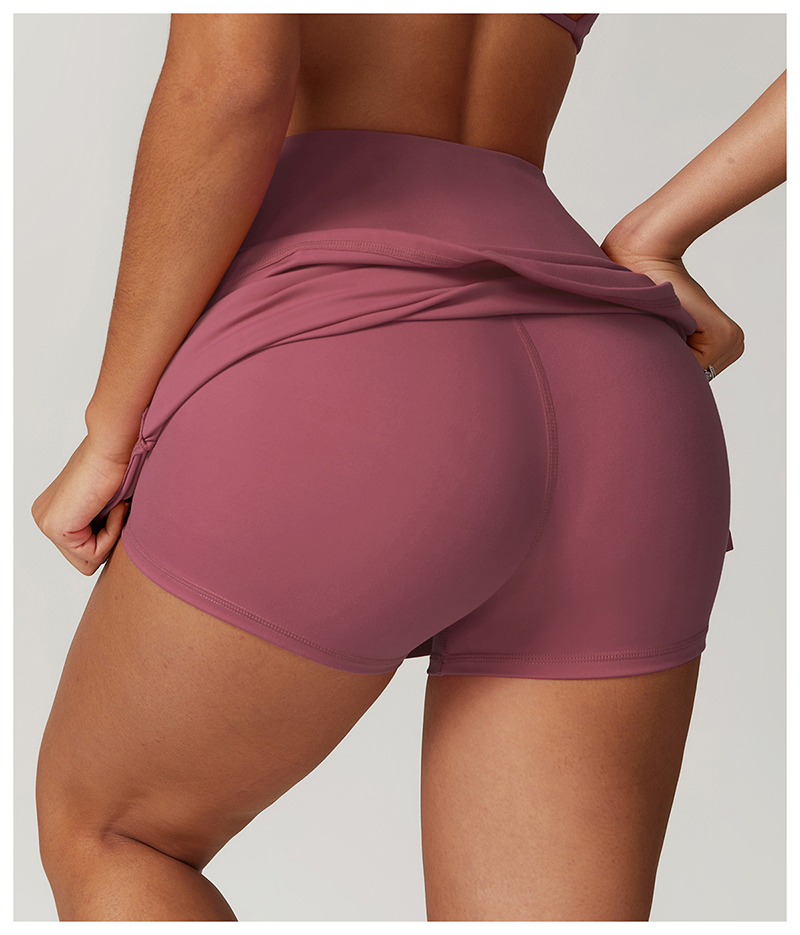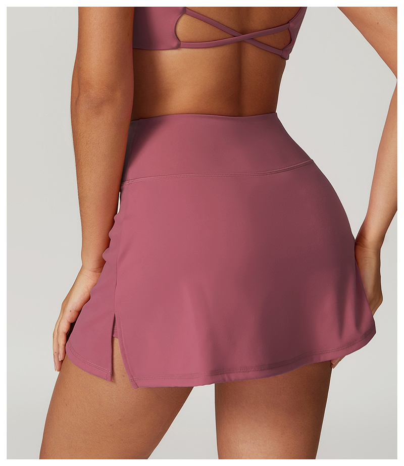 • Summer Slim Quick Dry Tennis Skirt Dance Fitness Running Solid Colour Sports Skirt Anti-Shine Fake Two Piece Sports Yoga Skirt