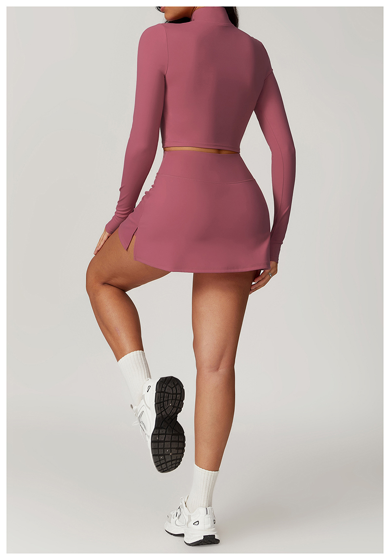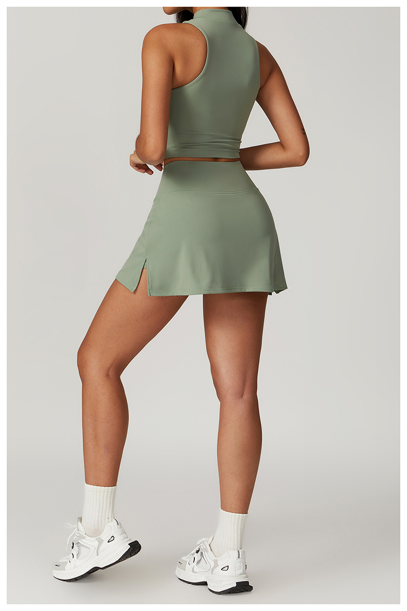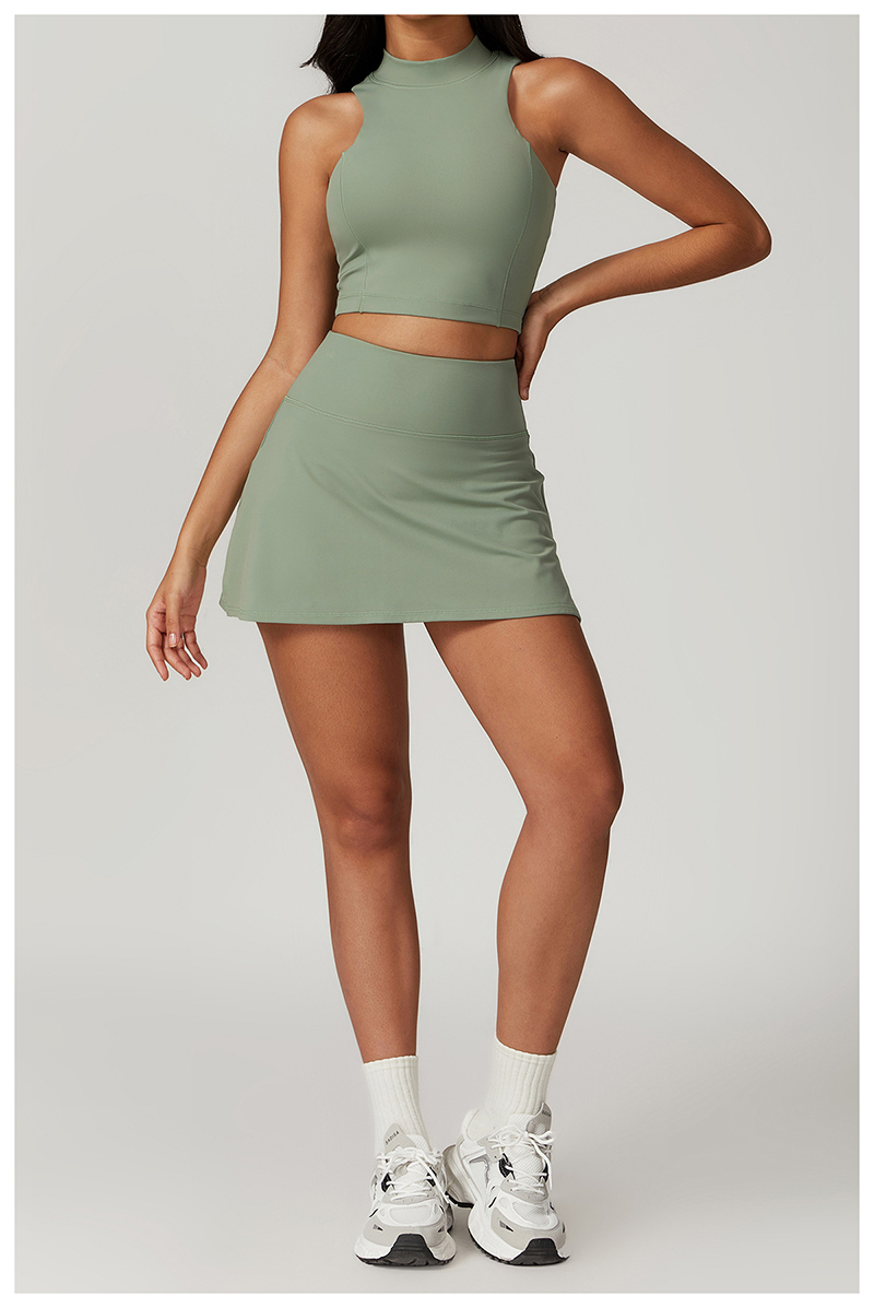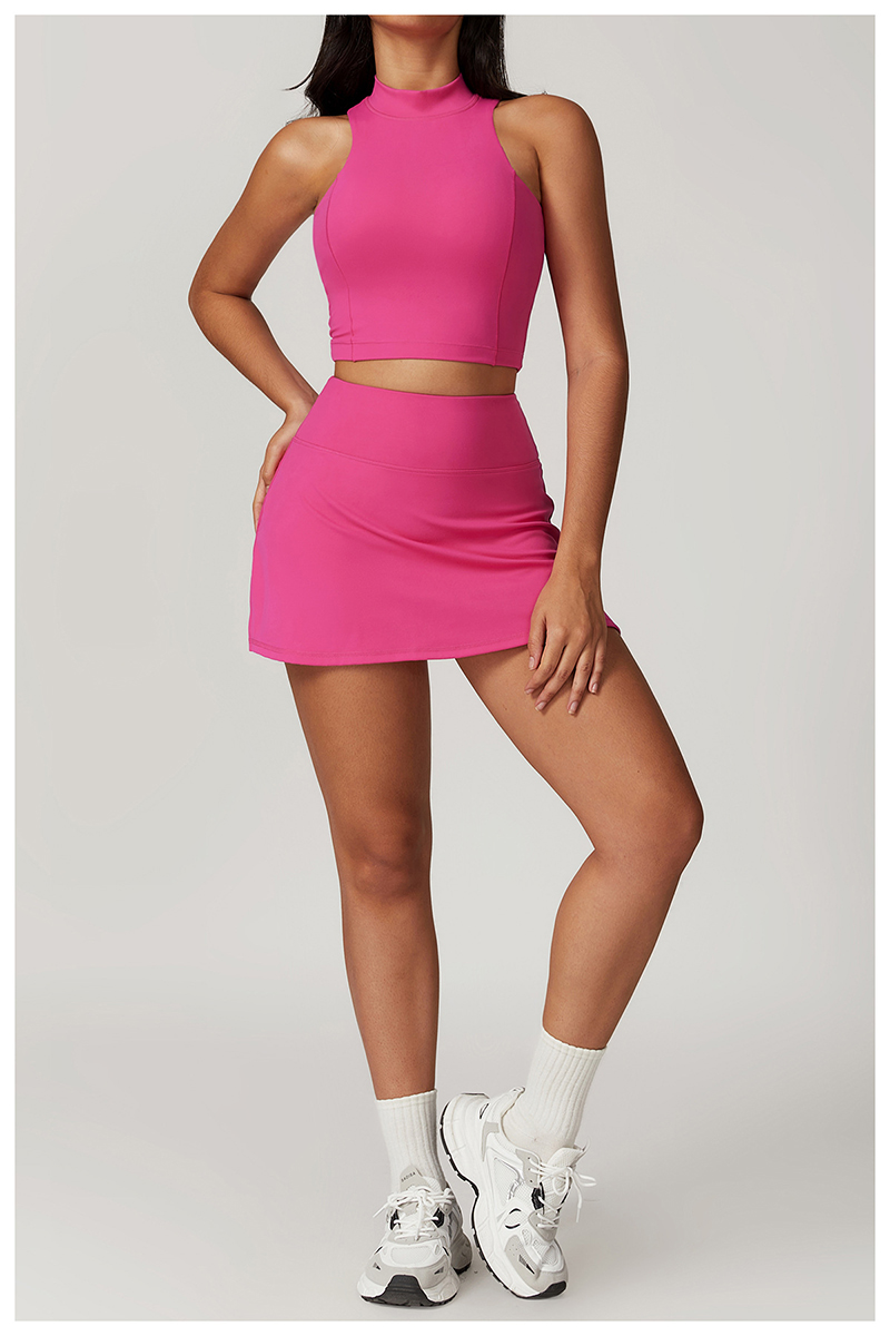 • Summer Slim Quick Dry Tennis Skirt Dance Fitness Running Solid Colour Sports Skirt Anti-Shine Fake Two Piece Sports Yoga Skirt