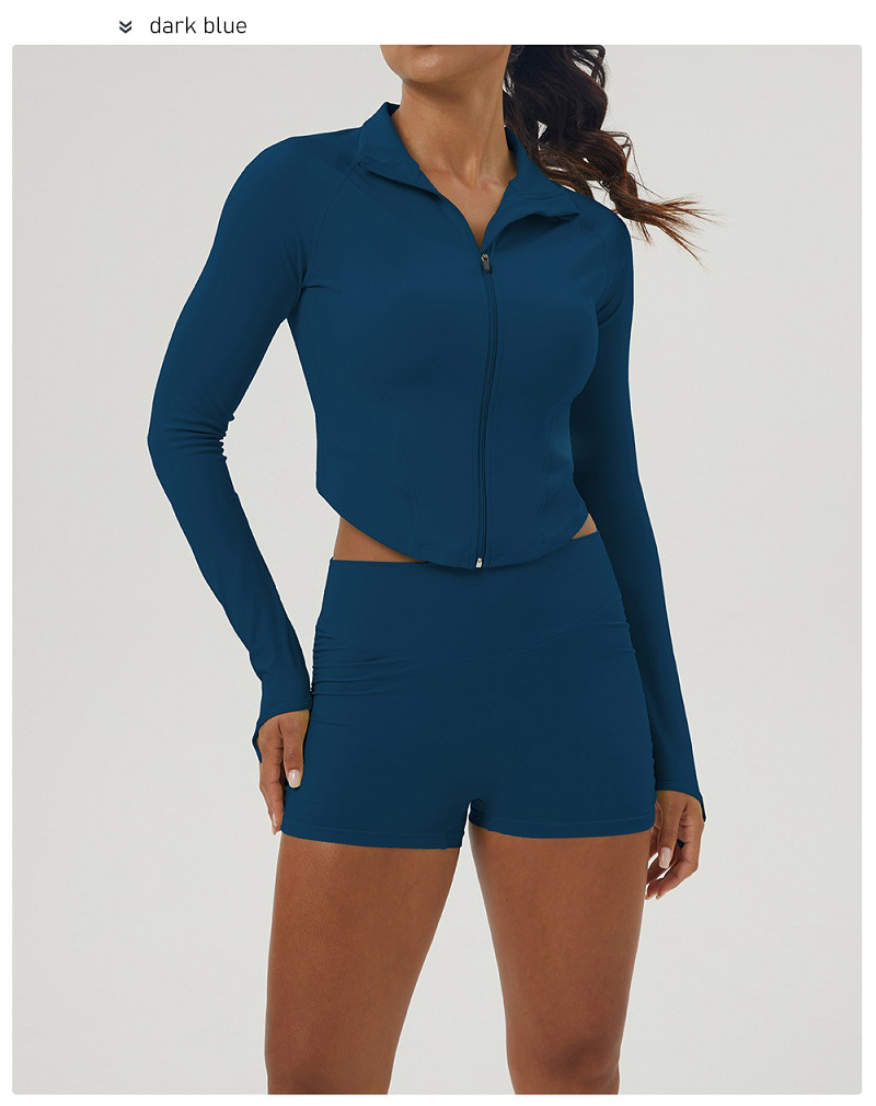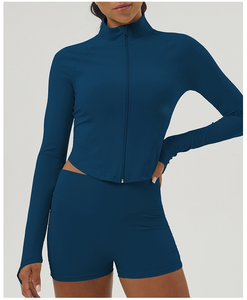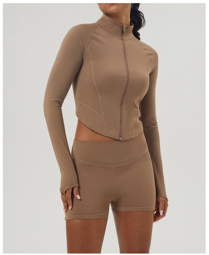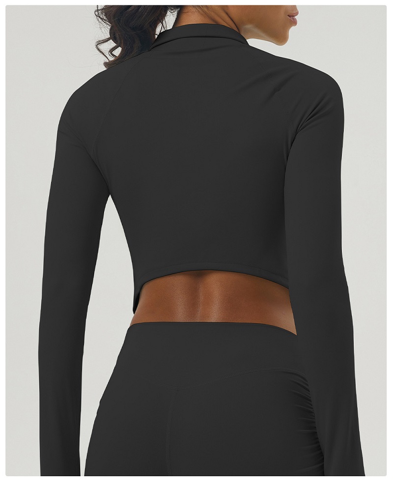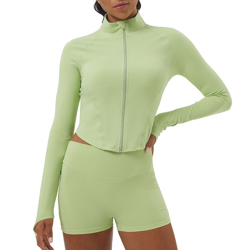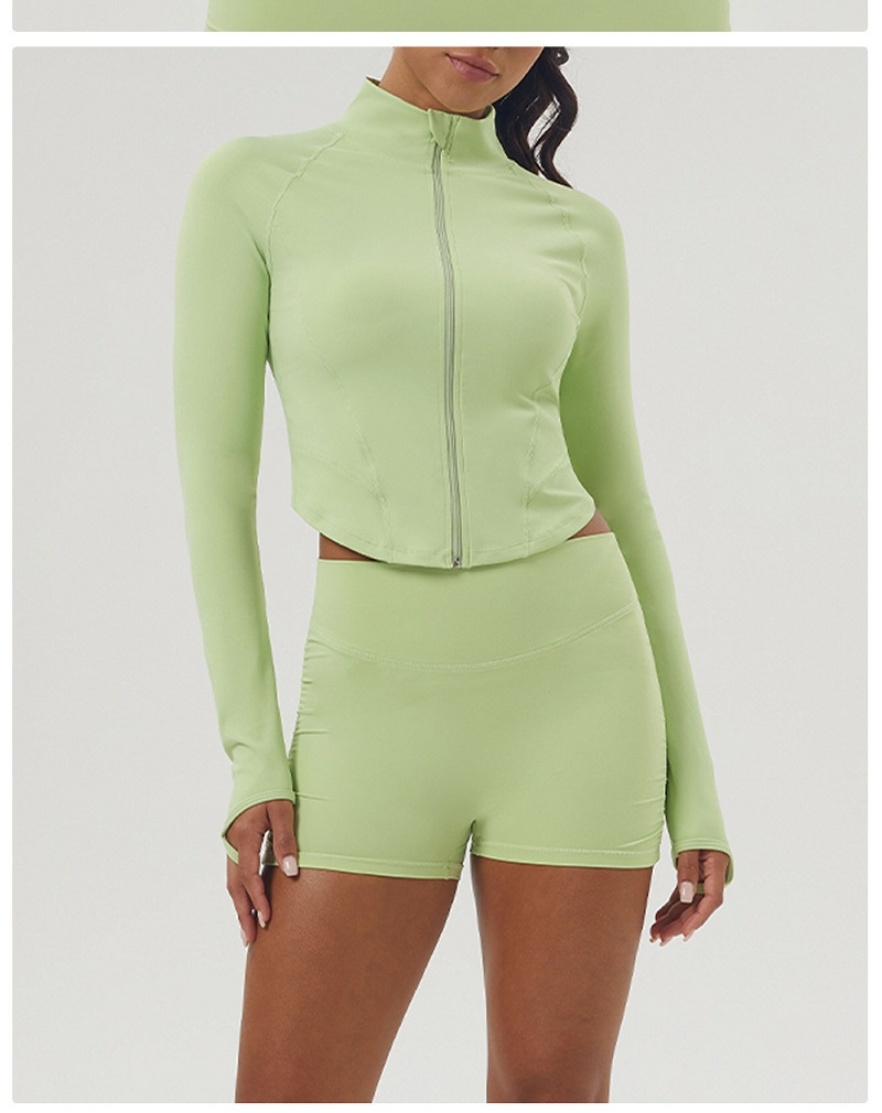 New Yoga Long Sleeve Women Standing Collar Slim Yoga Clothing Tops Gym Quick Dry Exercise Clothing Running Sports Zipper Jacket
