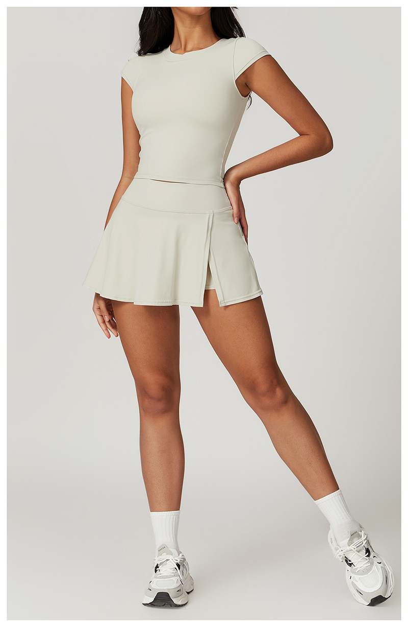 • Tight Tennis Skirt Set Yoga Clothing Anti-Shine Bottom Pants Set Quick Dry High Waisted Hip Lifting Running Fitness Exercise Set