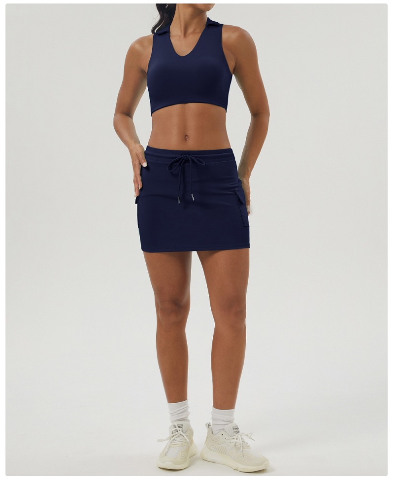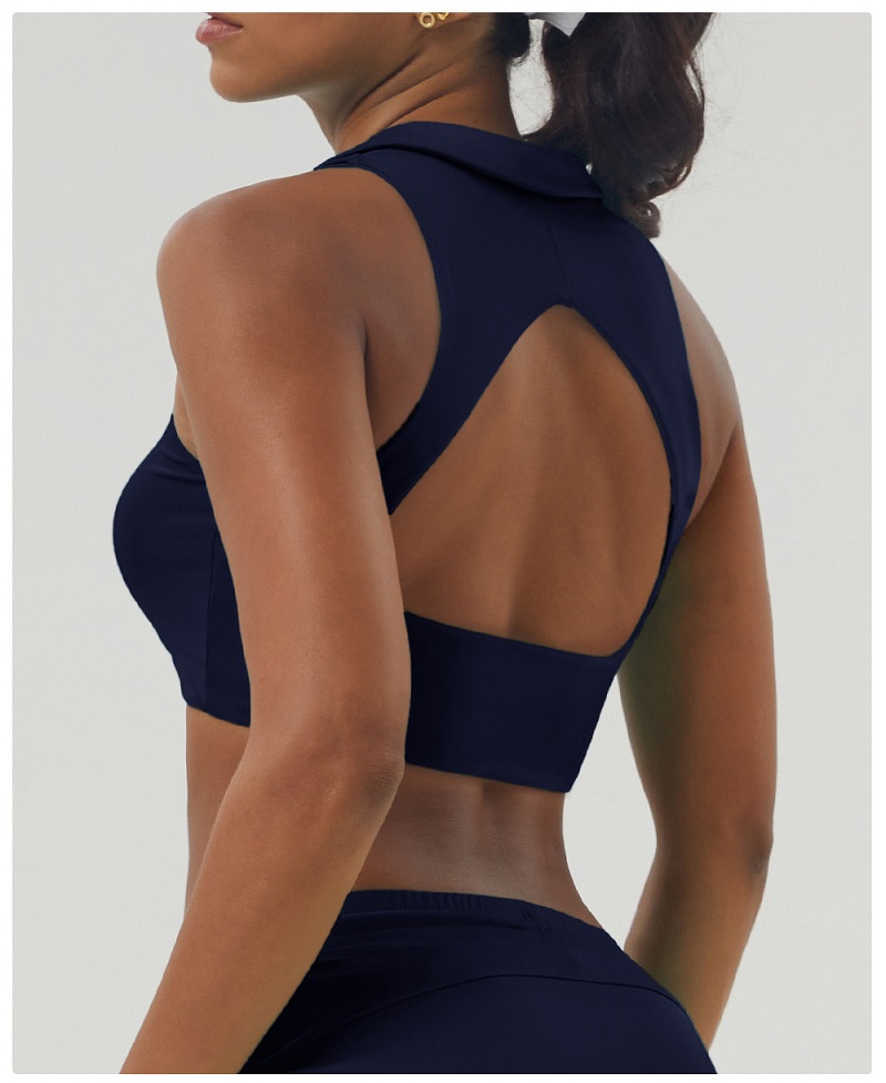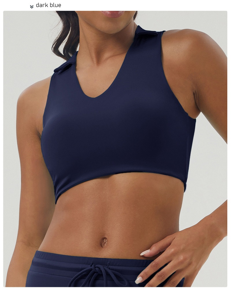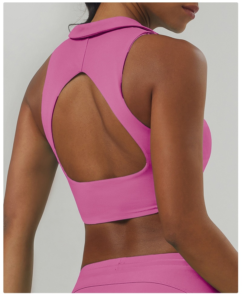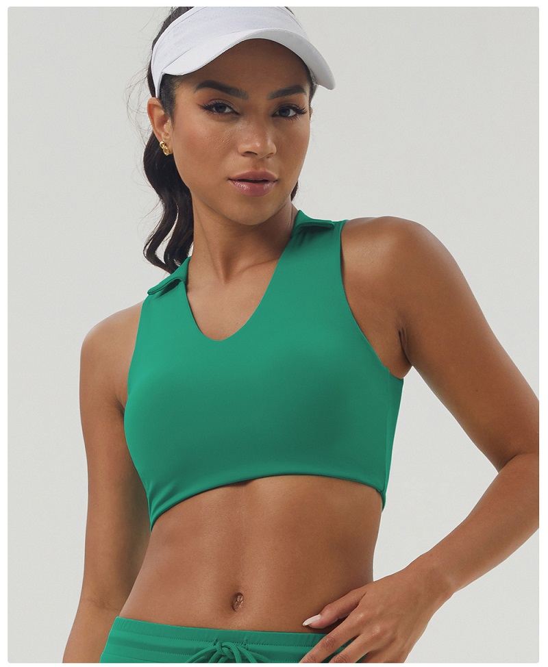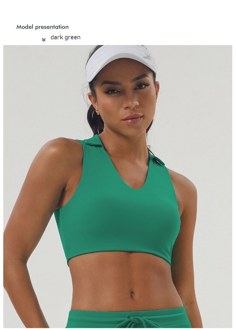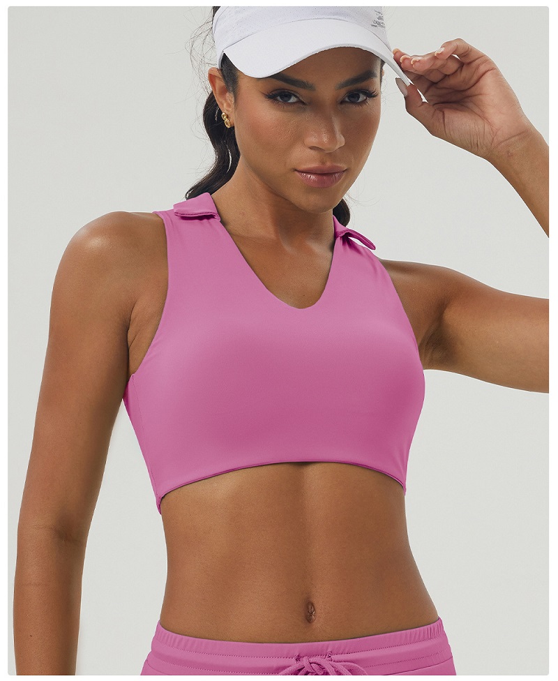 • Lapel Back Yoga Bra Running Shockproof Gym Underwear Gym Outdoor Sports Quick Dry Breathable Tank Top with Chest Pads Womens