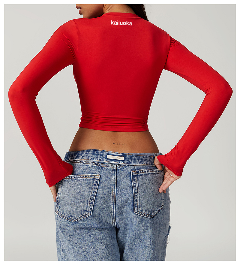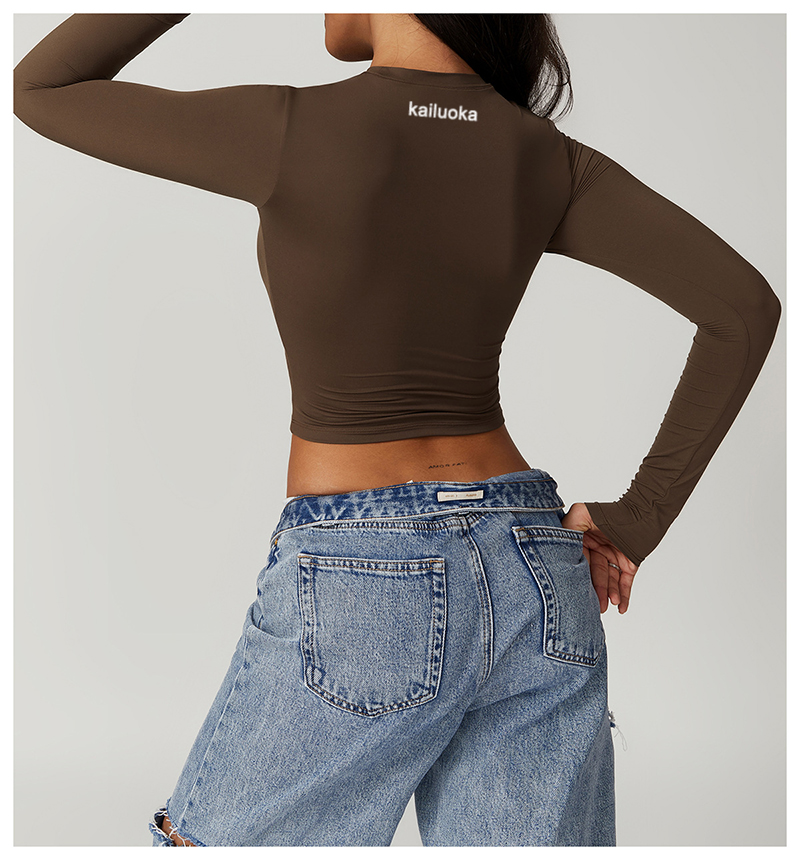 • Tight Athletic T-Shirt Quick Dry Long Sleeve Yoga Wear Pilates Running T-Shirt Workout Fitness Gym Sports Top Training Crop Top