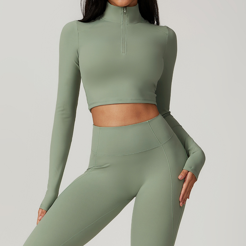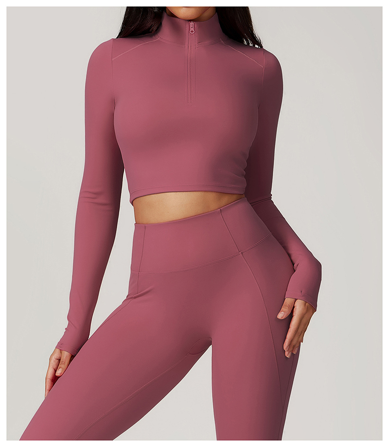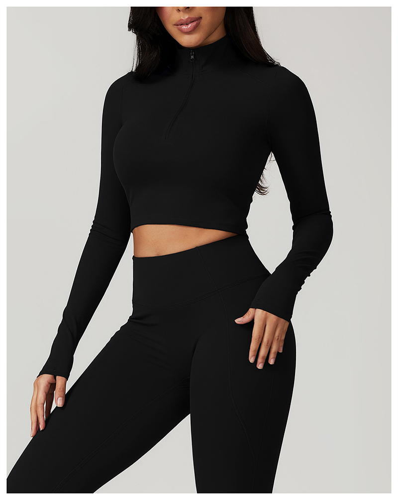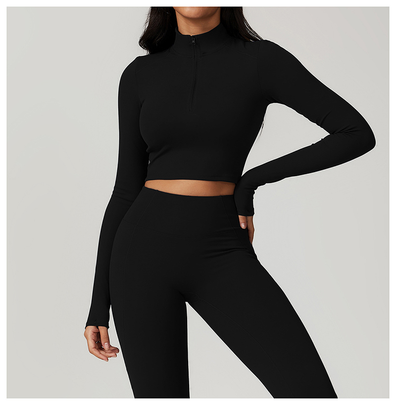 • Zip Tight Long-sleeved Yoga Clothing Gym Sports T-shirt High Strength Quick-drying Breathable Outer Wear Running Fitness Tops