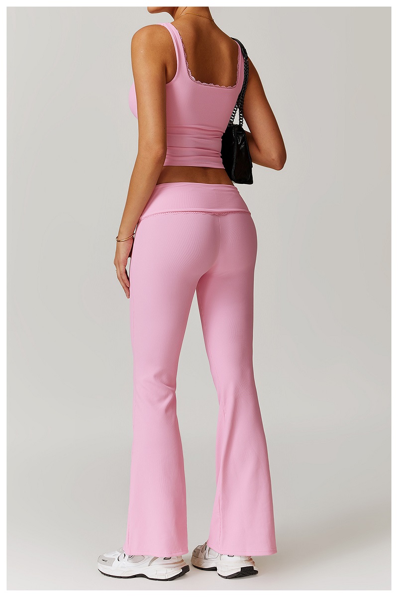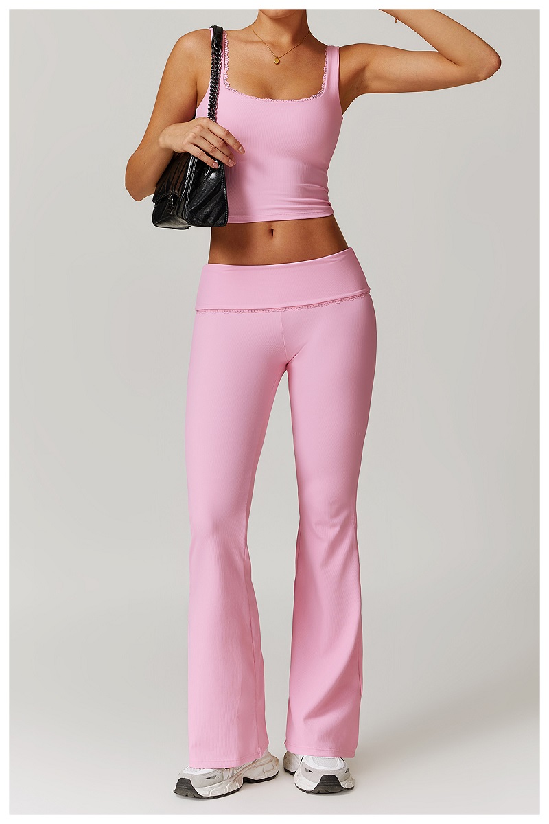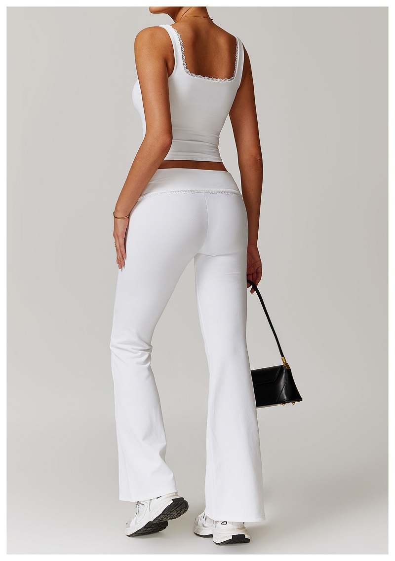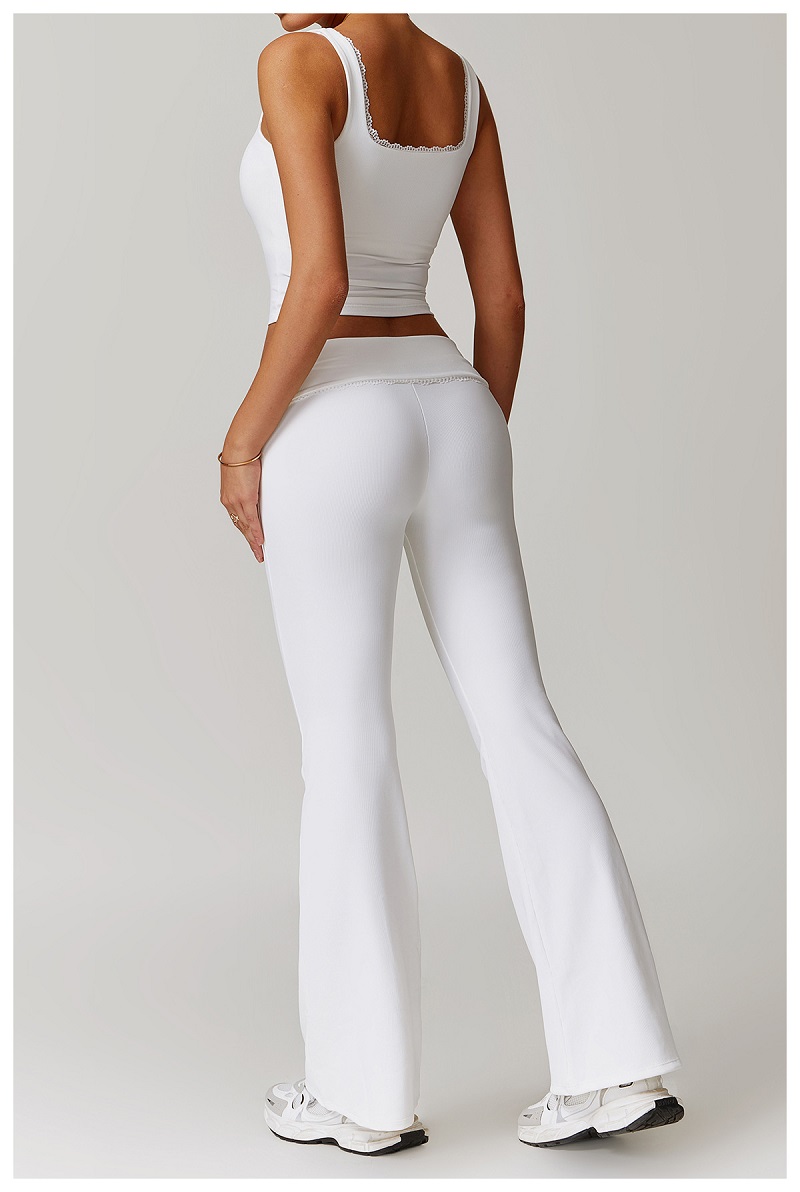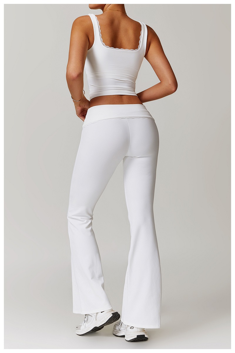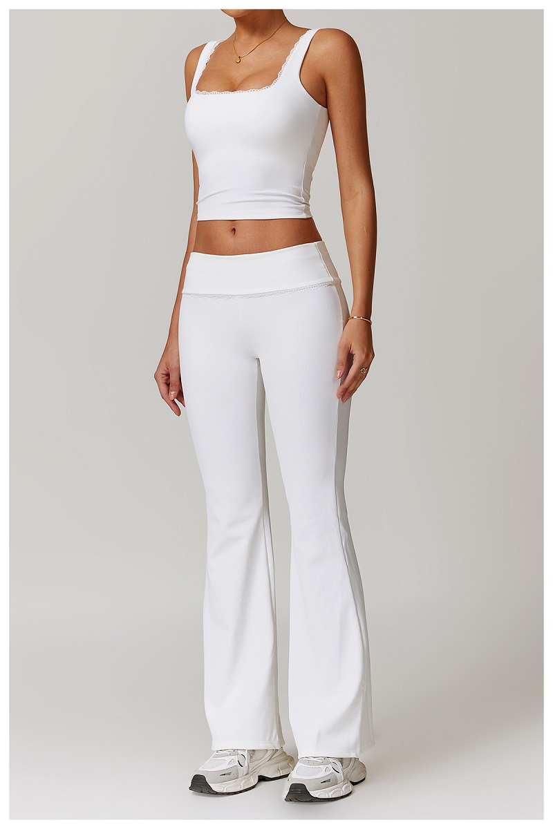 • Tight High Waist Yoga Flared Pants Wide Leg Outer Wear Lace Lace Micro Pants Women Hip Lifting Casual Cute Fitness Sweatpants