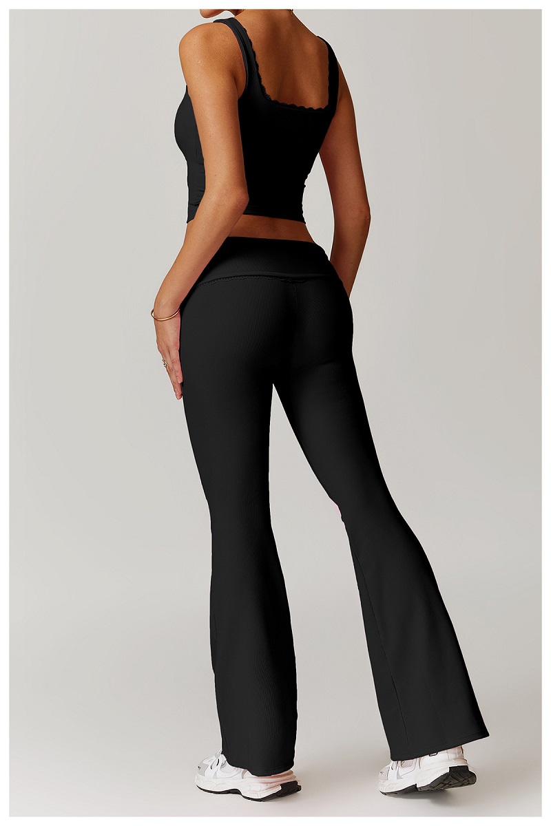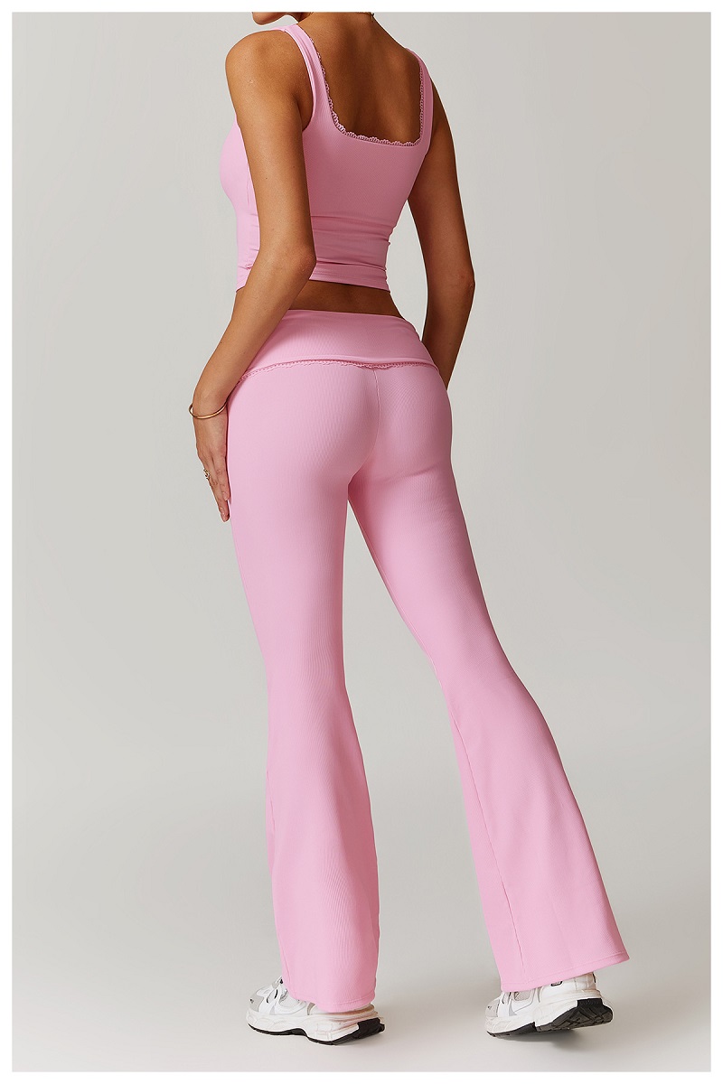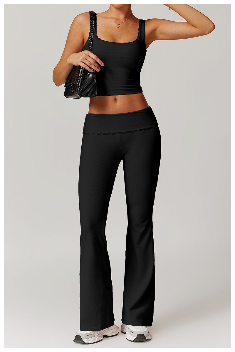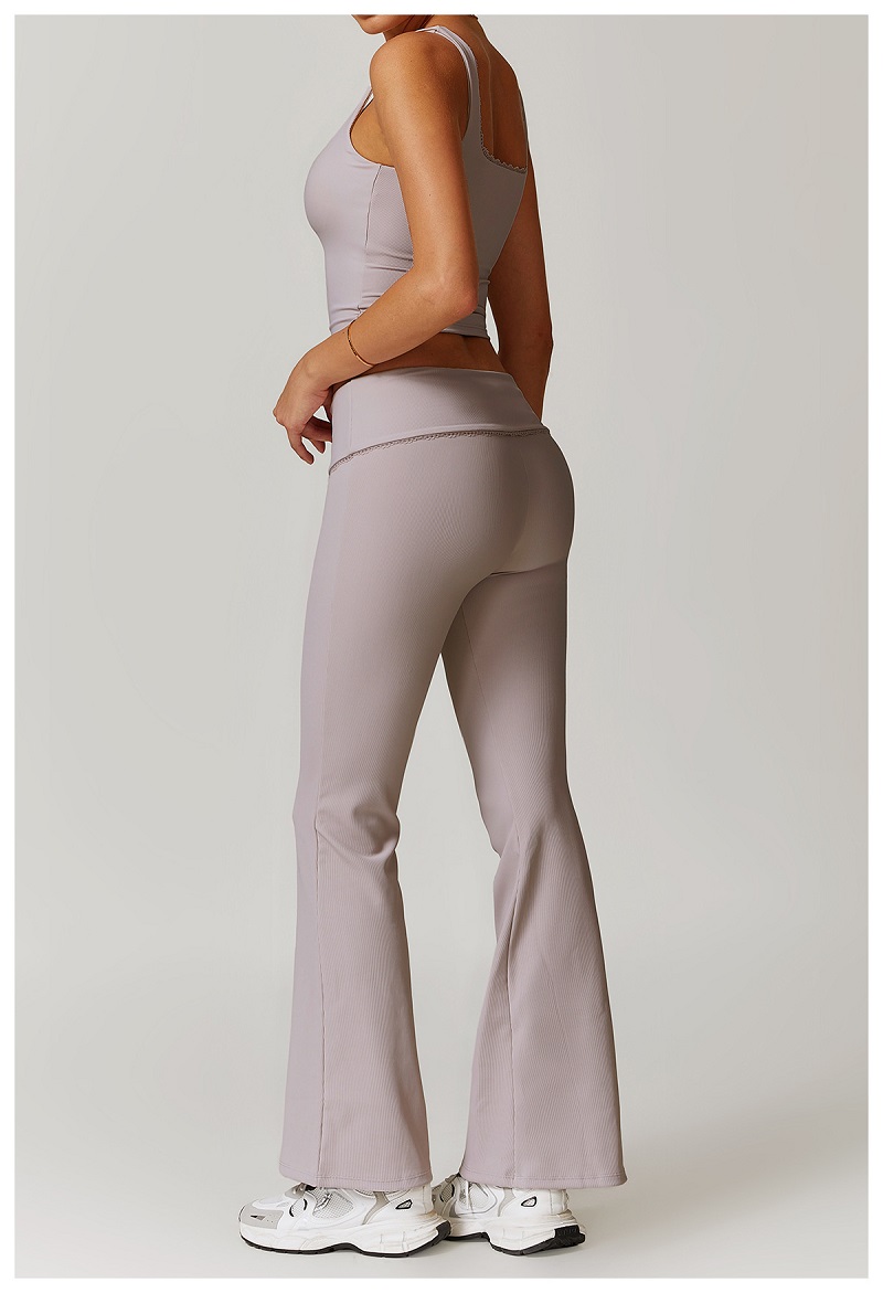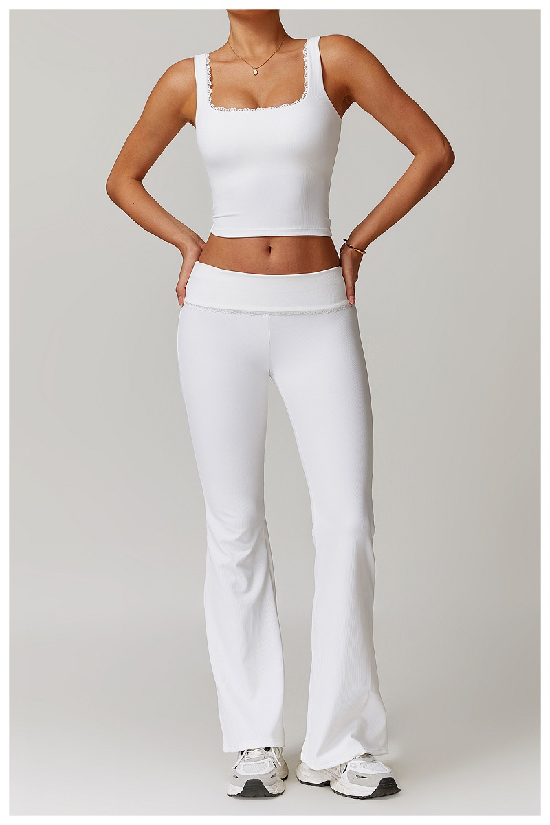 • Tight High Waist Yoga Flared Pants Wide Leg Outer Wear Lace Lace Micro Pants Women Hip Lifting Casual Cute Fitness Sweatpants
