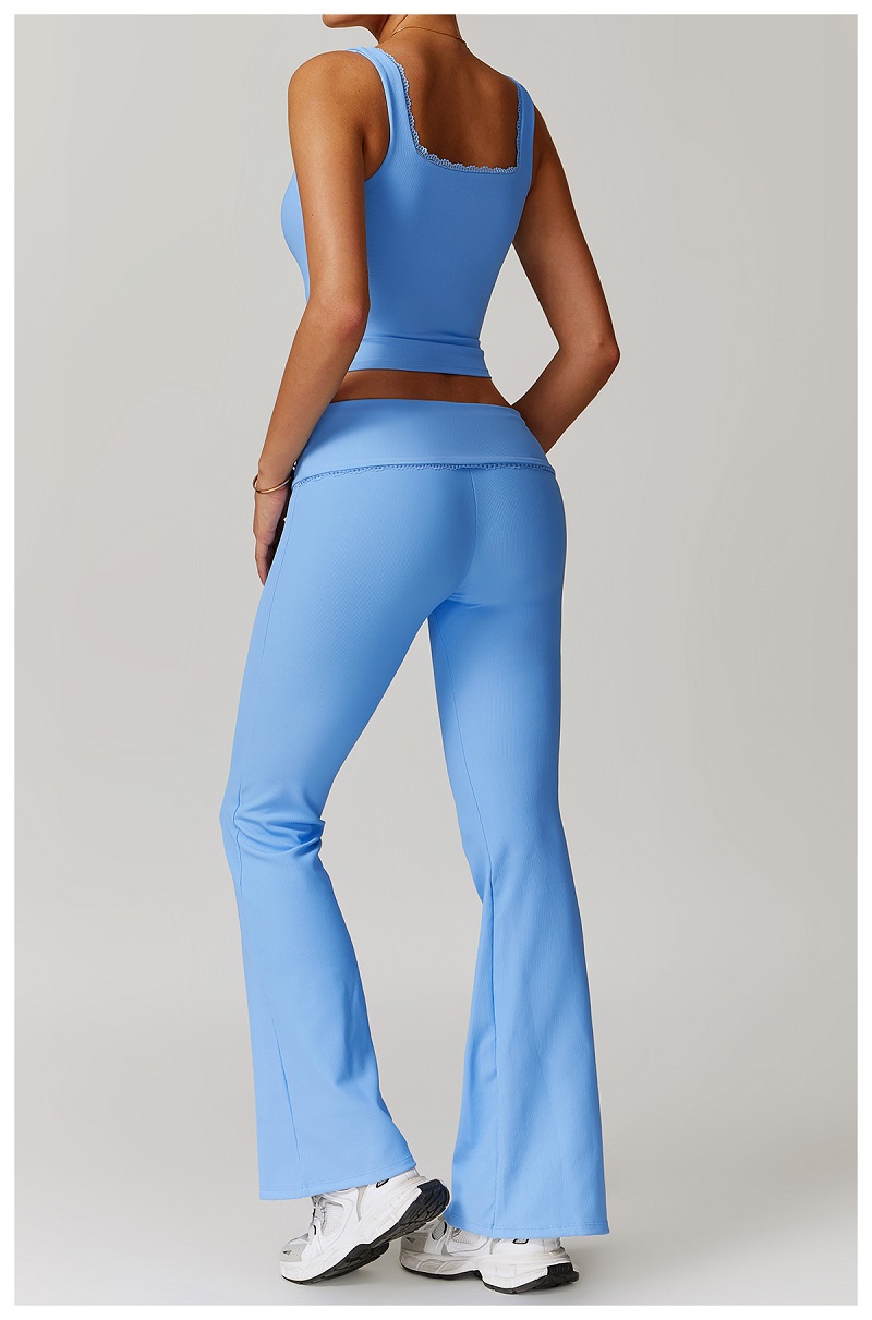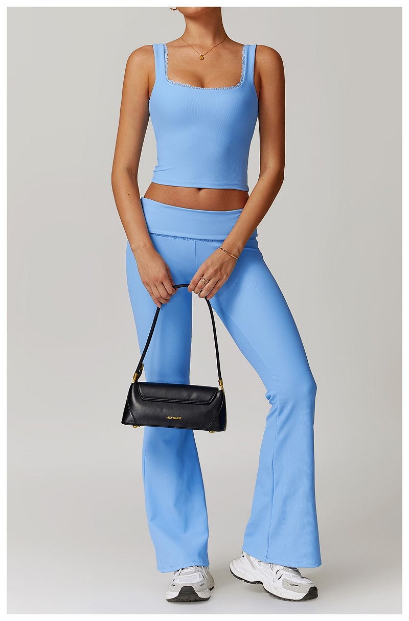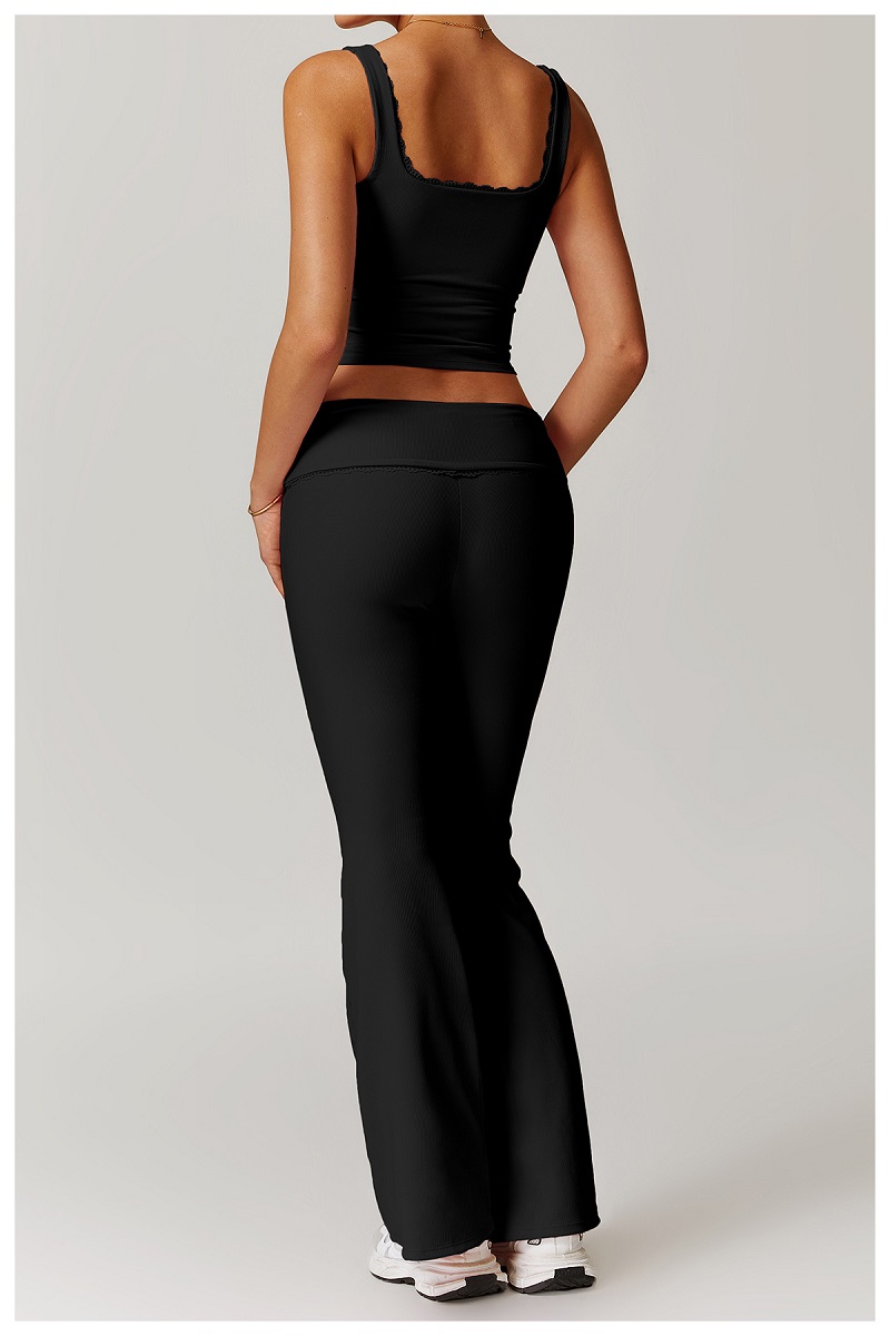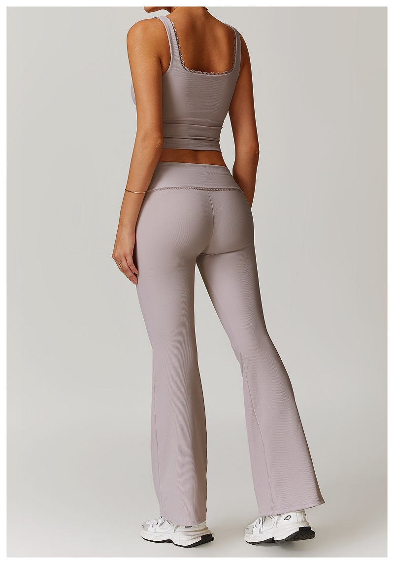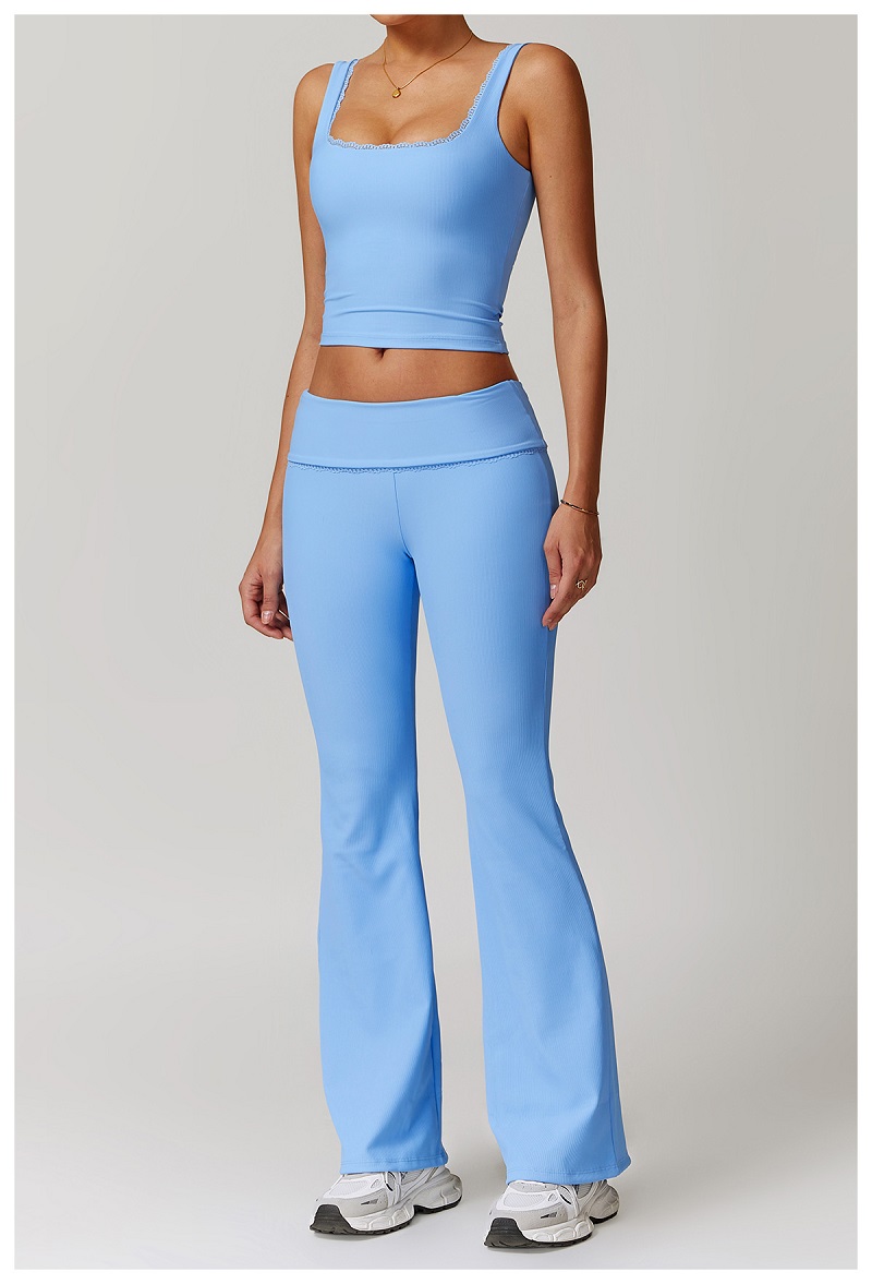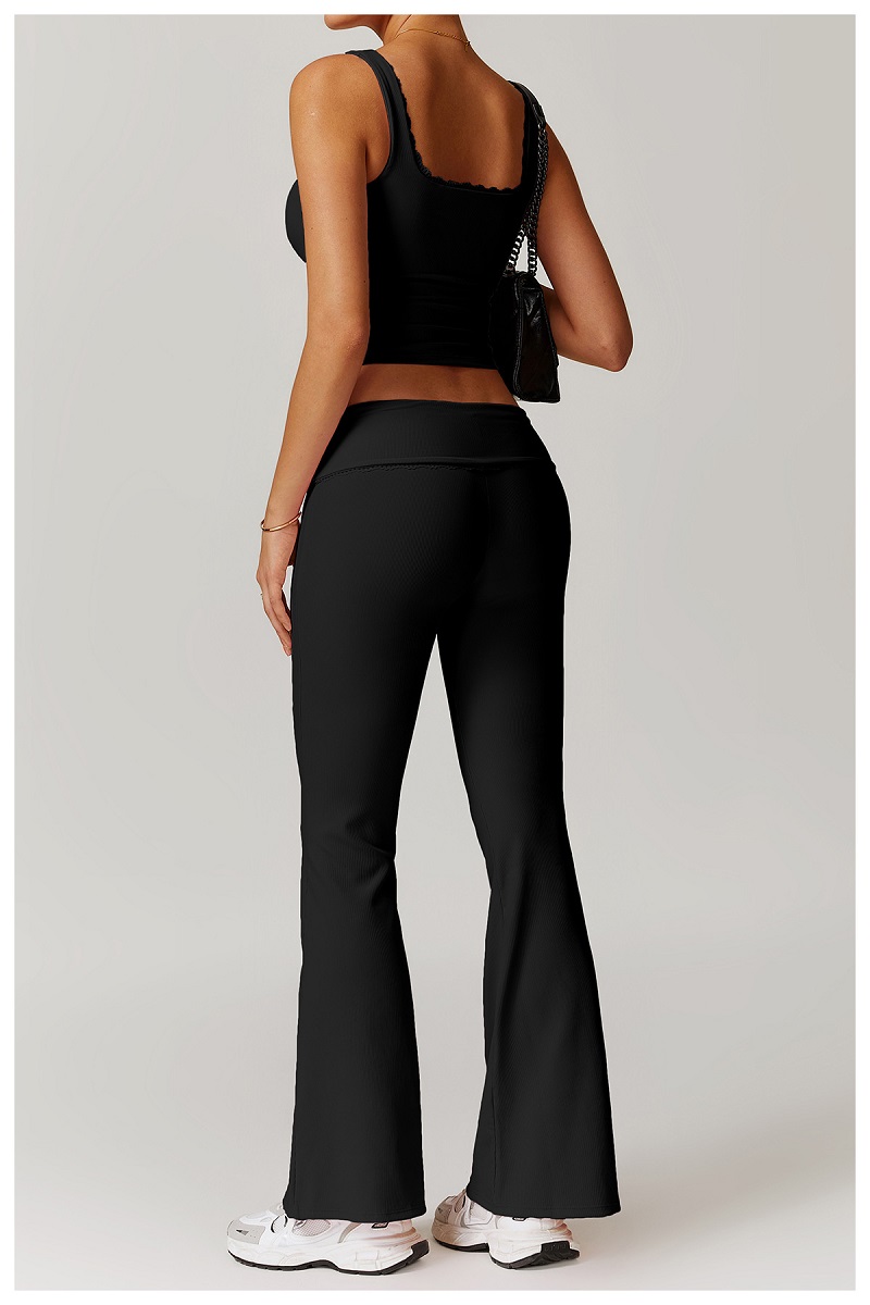• Tight High Waist Yoga Flared Pants Wide Leg Outer Wear Lace Lace Micro Pants Women Hip Lifting Casual Cute Fitness Sweatpants