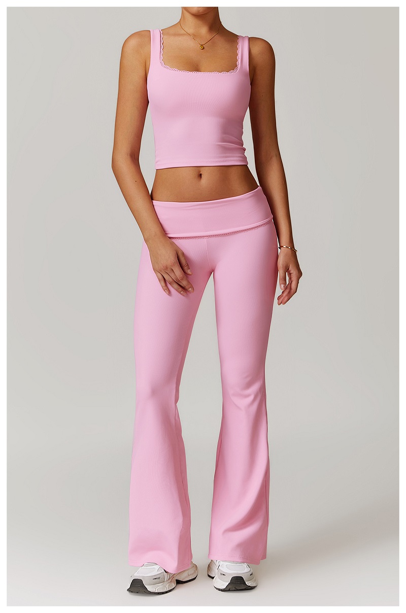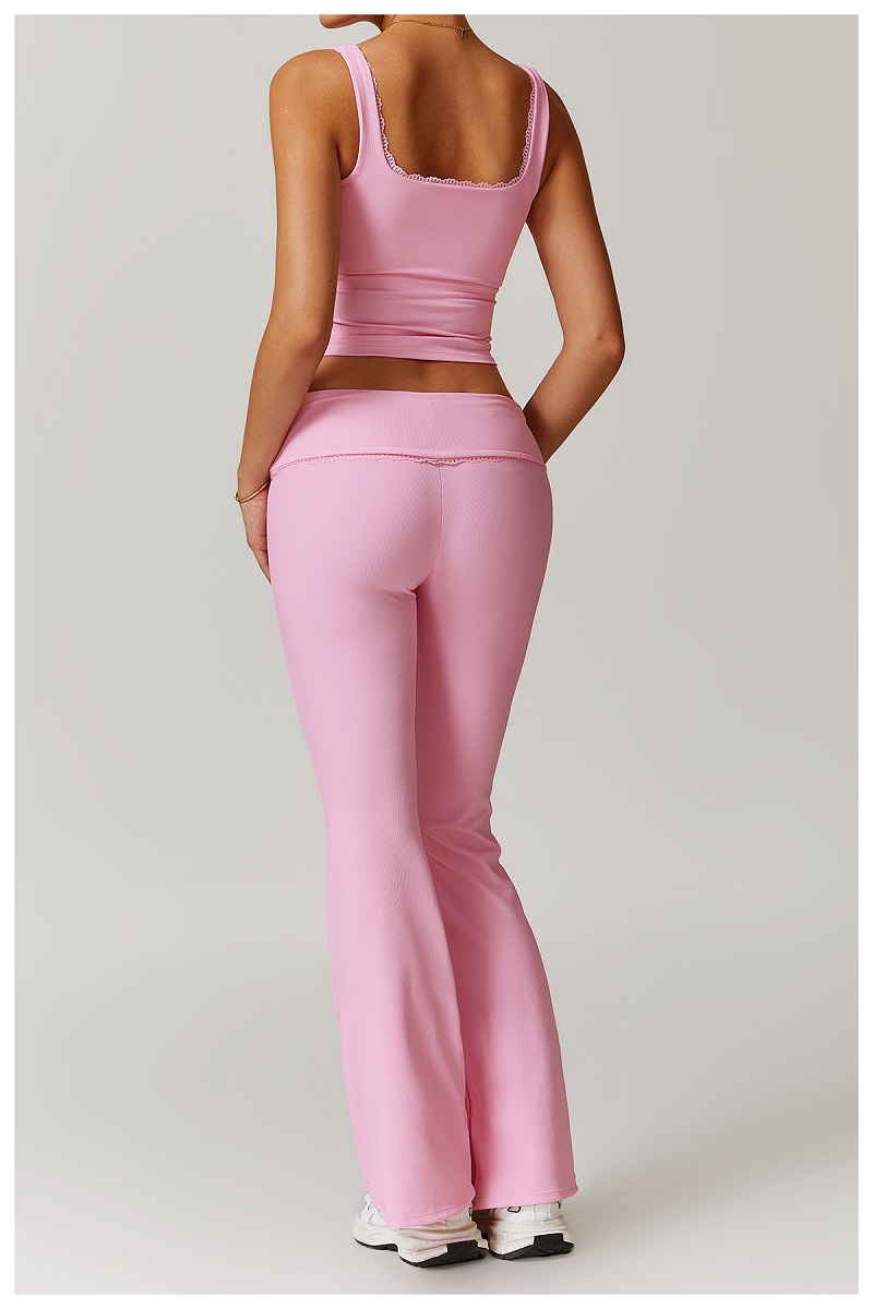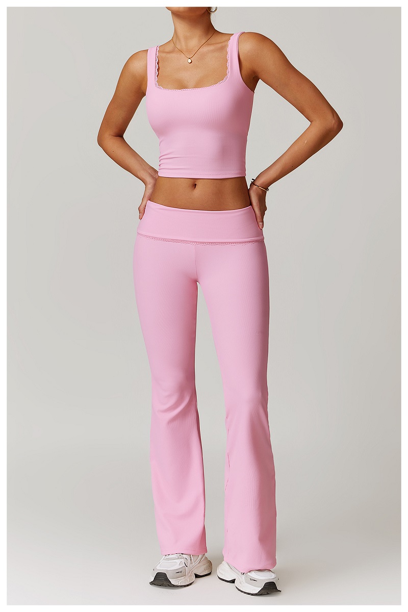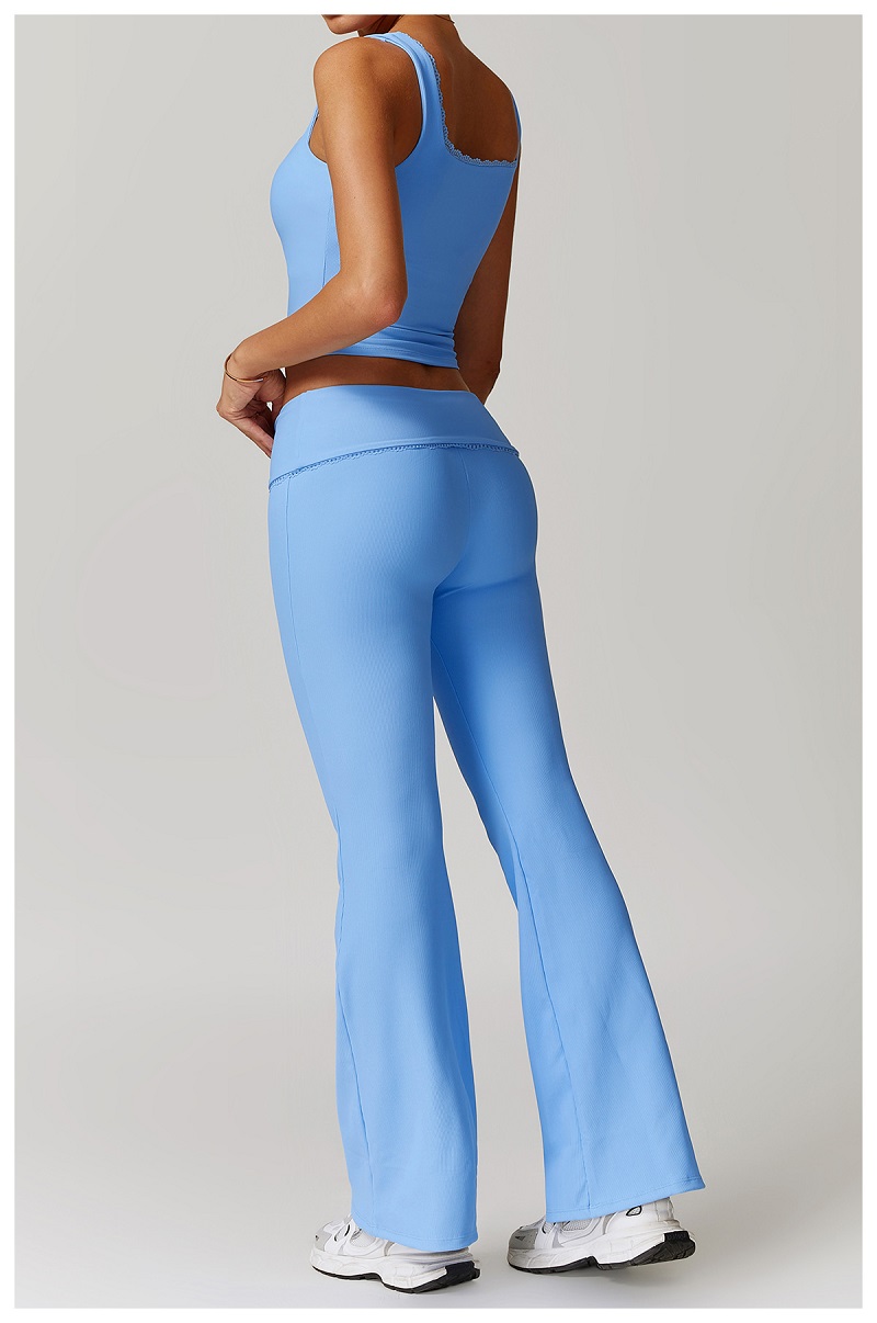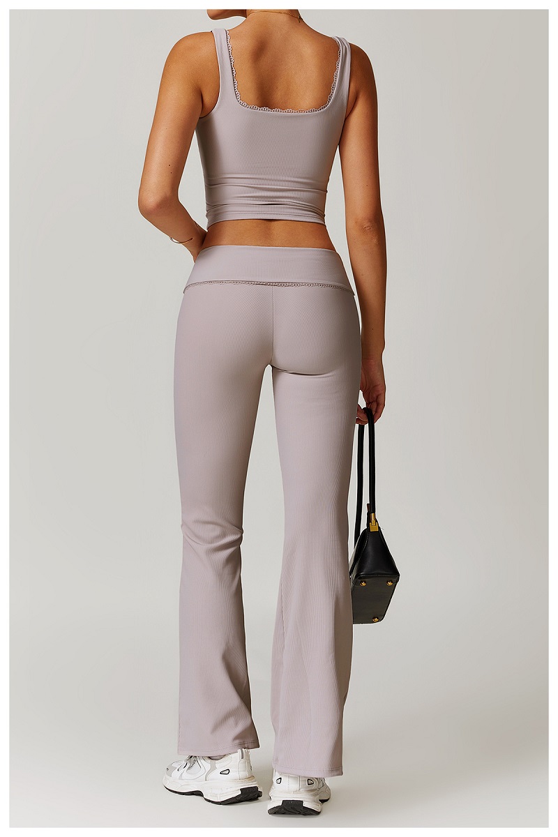 • Tight High Waist Yoga Flared Pants Wide Leg Outer Wear Lace Lace Micro Pants Women Hip Lifting Casual Cute Fitness Sweatpants