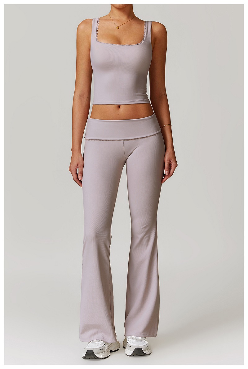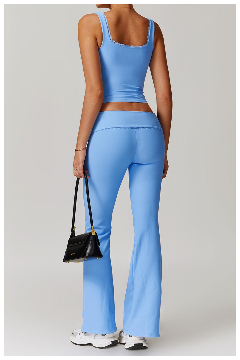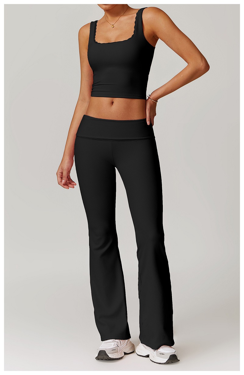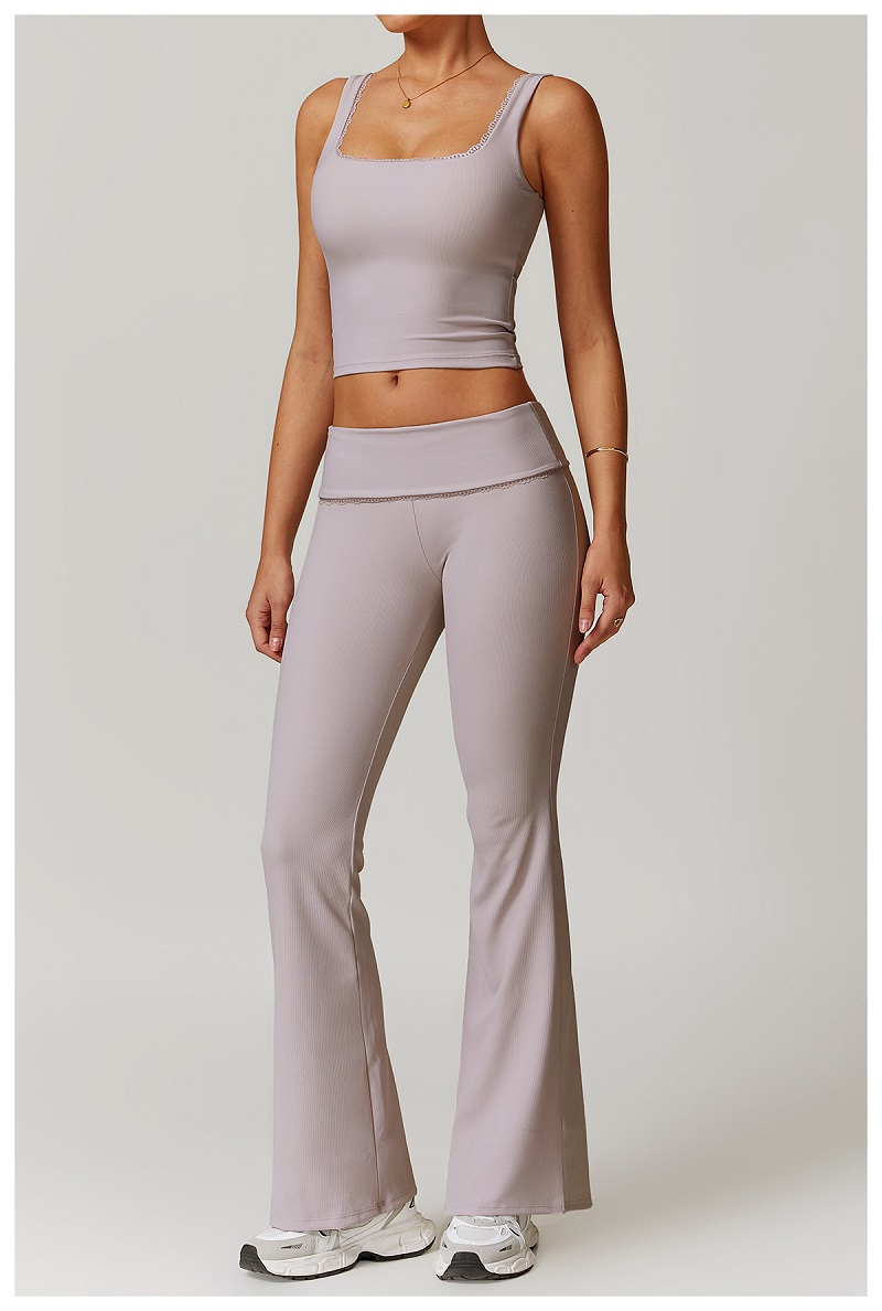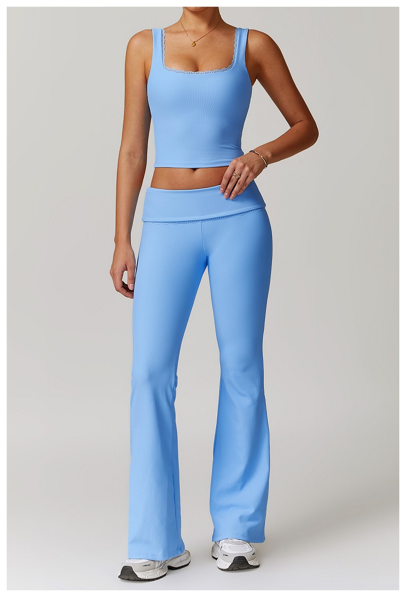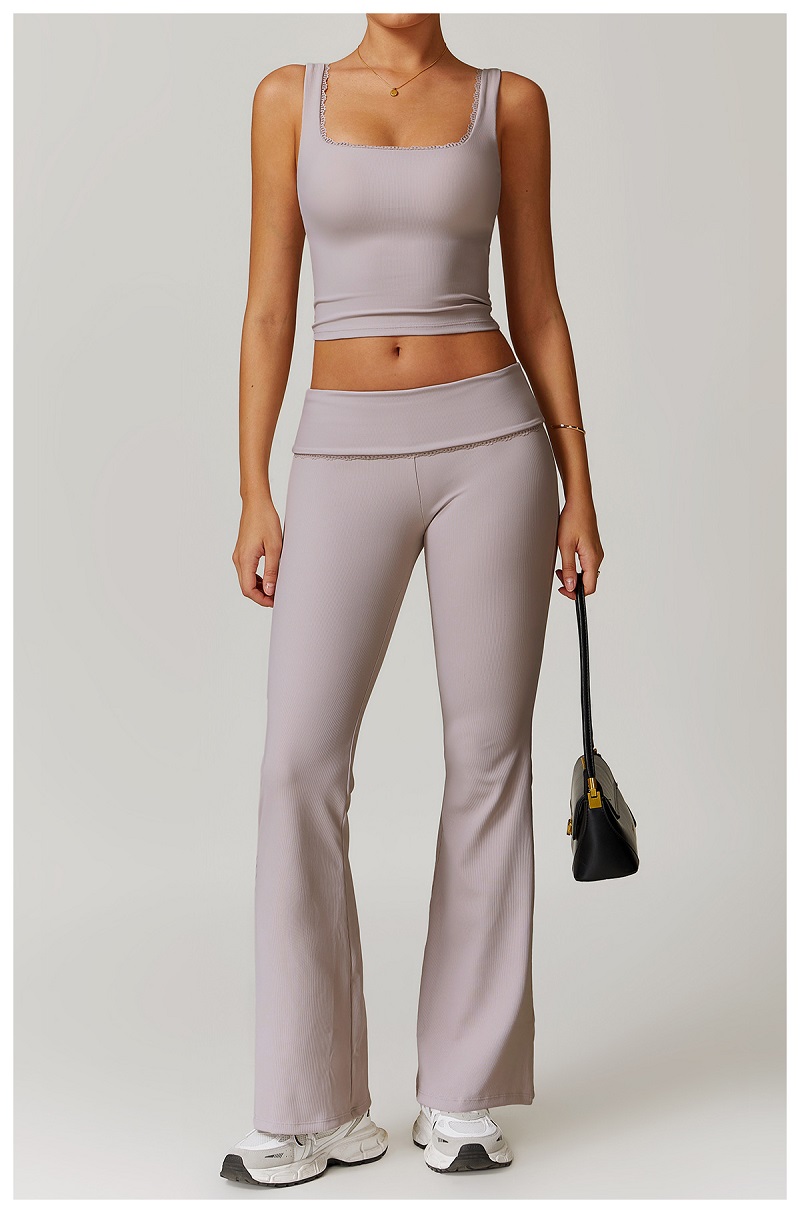 • Tight High Waist Yoga Flared Pants Wide Leg Outer Wear Lace Lace Micro Pants Women Hip Lifting Casual Cute Fitness Sweatpants