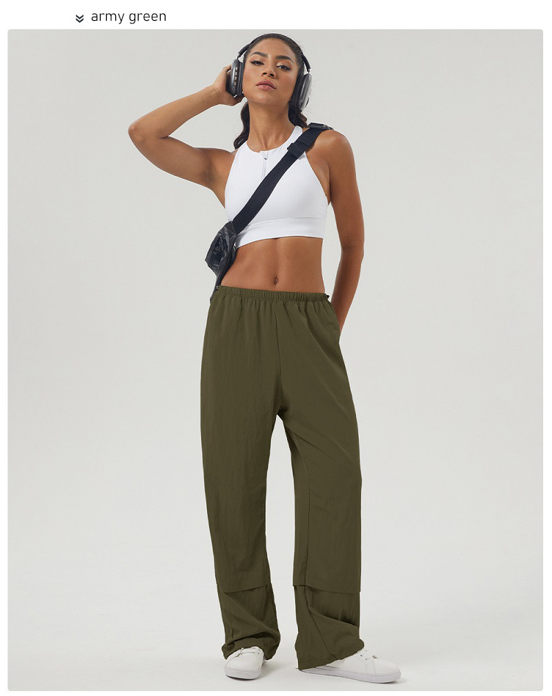 With Pockets Loose Casual Work Pants Women High Waisted Drawstring Straight Pants Fall and Winter Outdoor Sports Training Pants