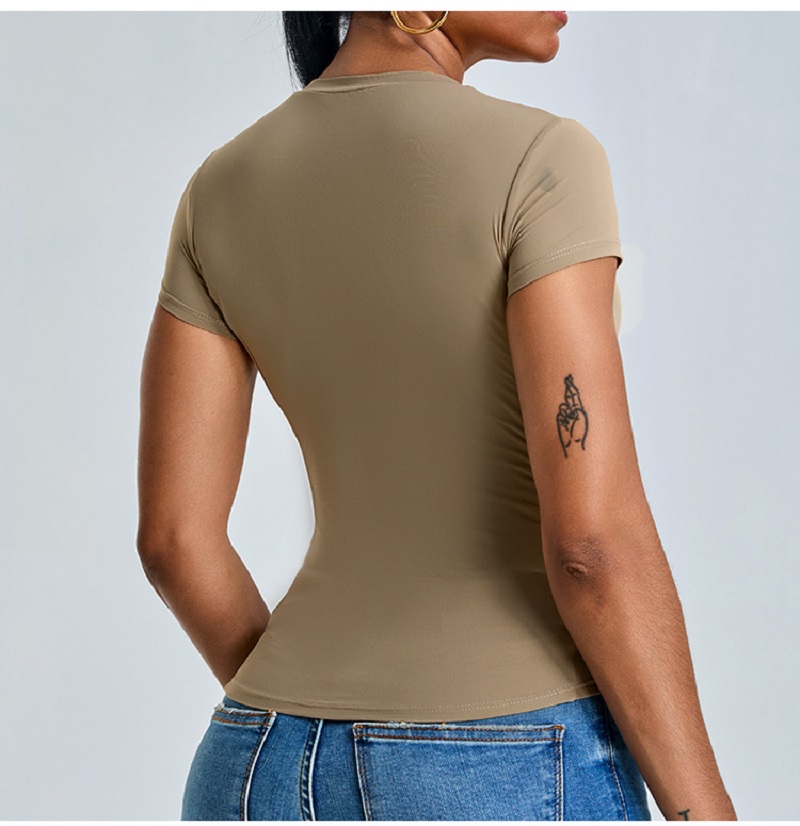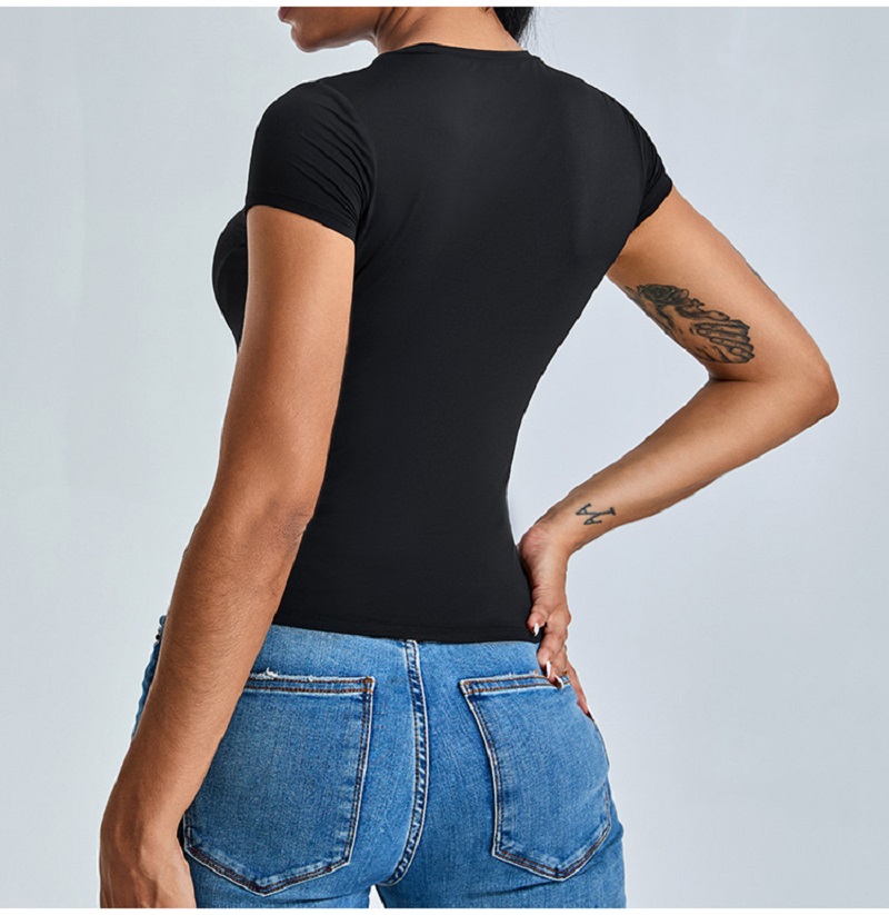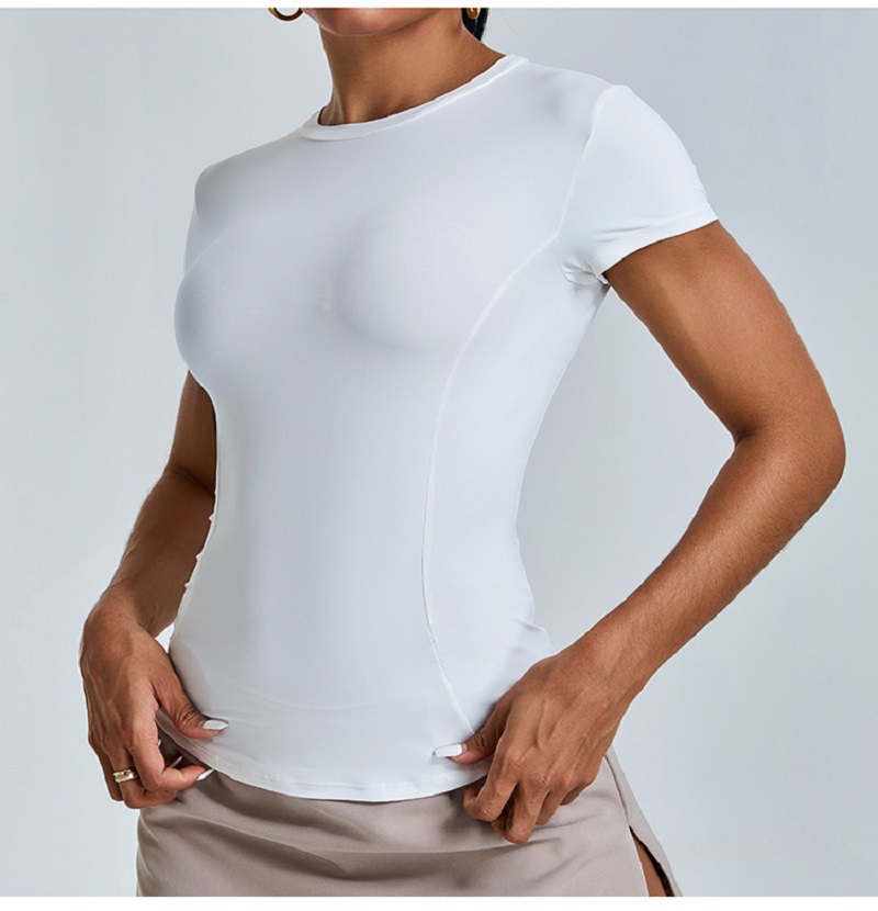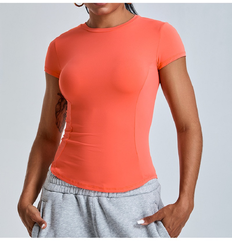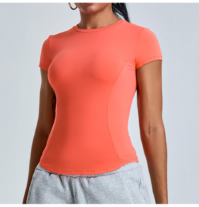 • Yoga Round Neck Short Sleeve Tops Women Slim Thin Long Sportswear T-shirt Fitness Workout Tight Outdoor Running Fitness Clothing
