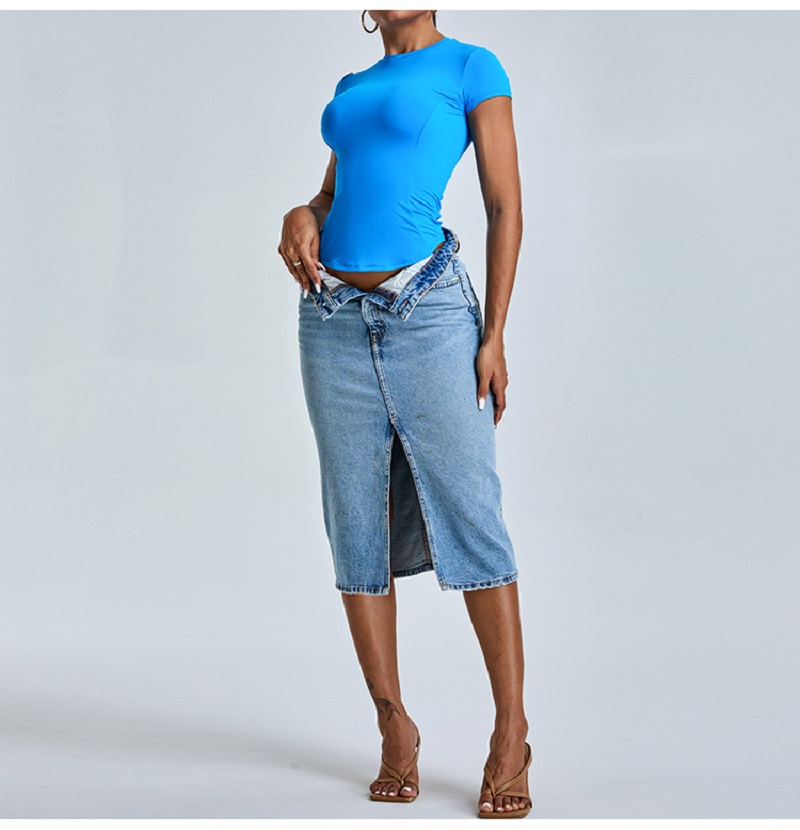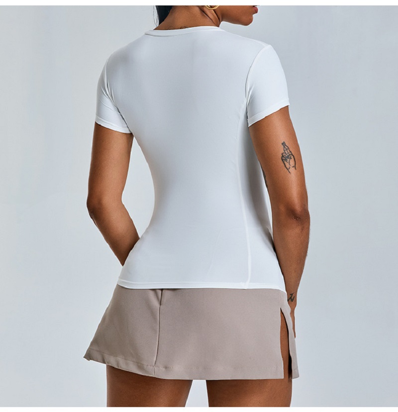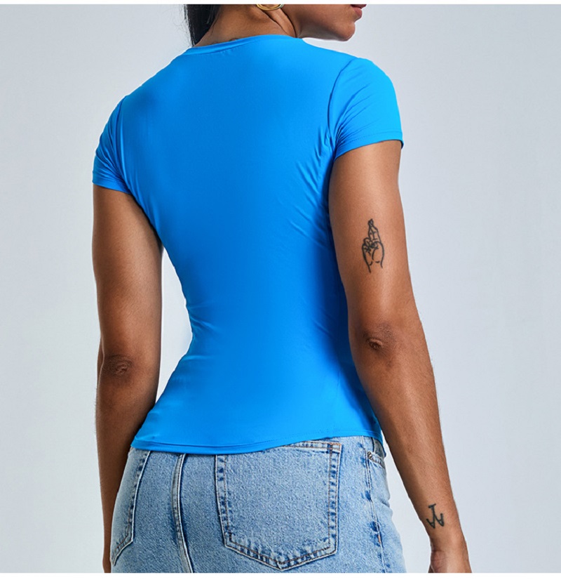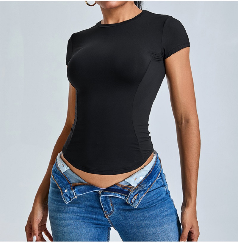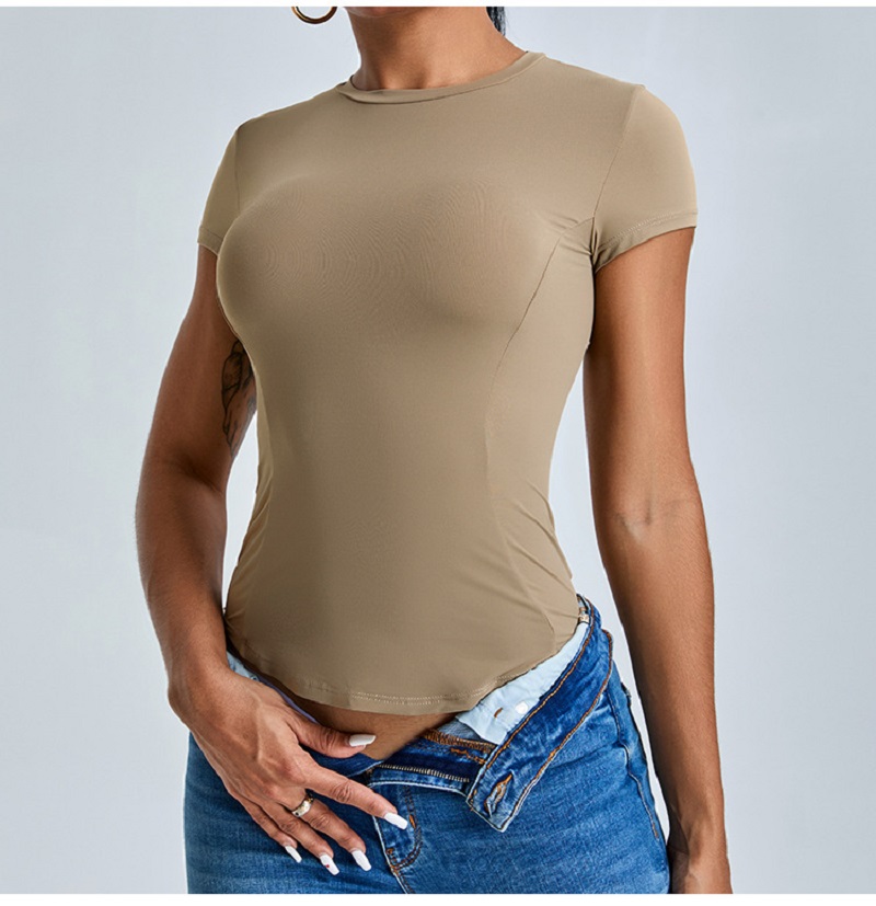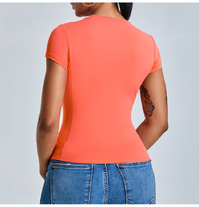• Yoga Round Neck Short Sleeve Tops Women Slim Thin Long Sportswear T-shirt Fitness Workout Tight Outdoor Running Fitness Clothing