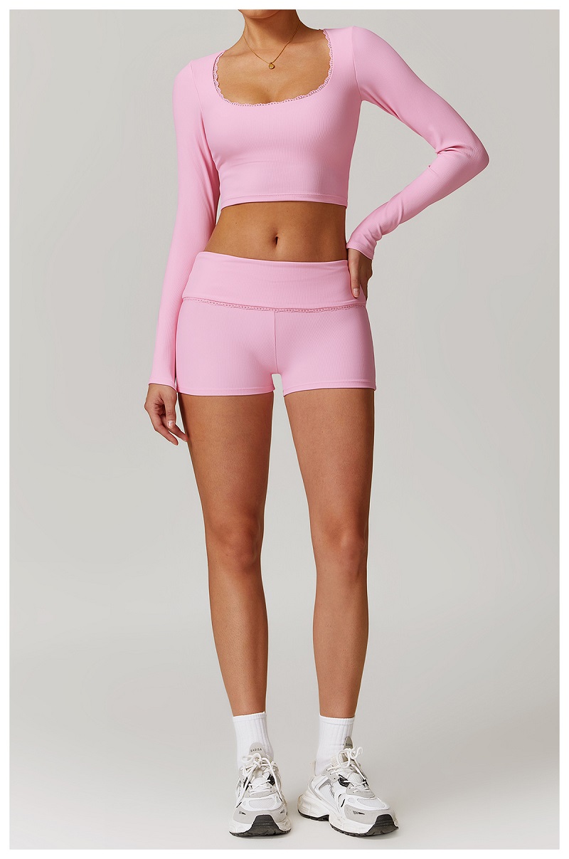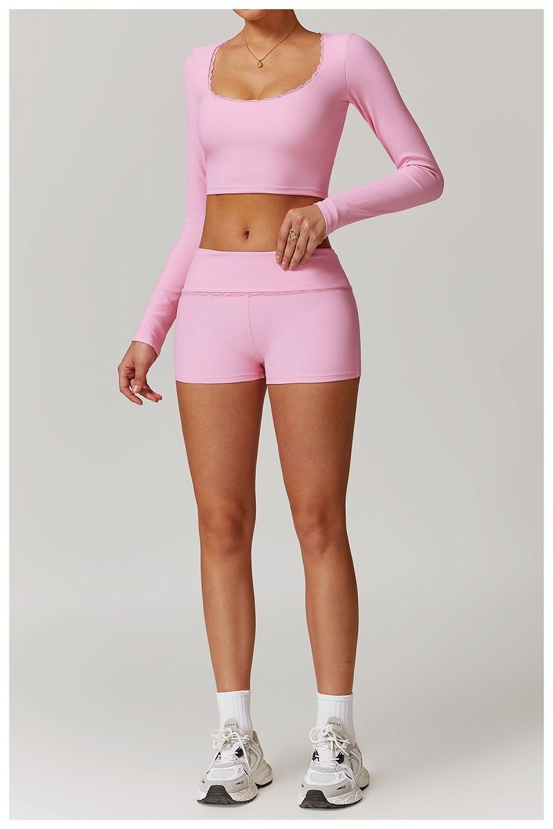 • High Waisted Slim Sports Shorts Summer Peach Lift Hip Lace Yoga Pants Gym Workout Wear Outdoor Running Quick Dry Fitness Shorts