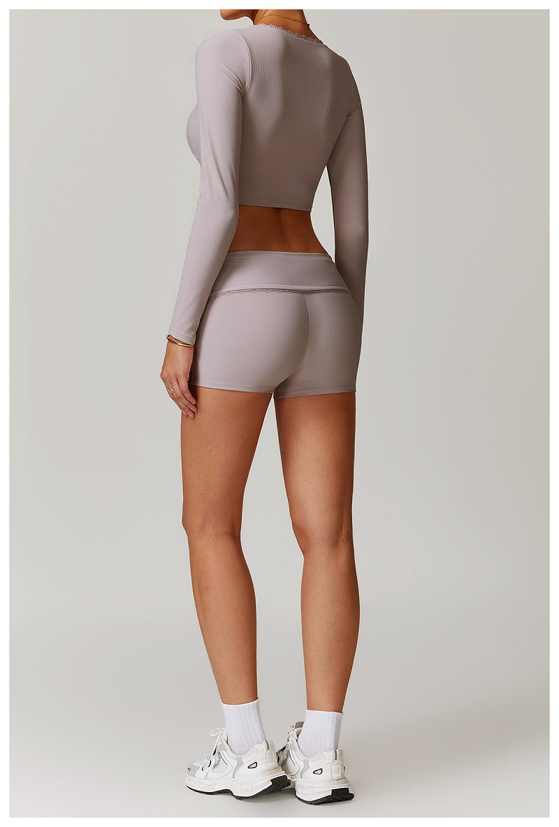 High Waisted Slim Sports Shorts Summer Peach Lift Hip Lace Yoga Pants Gym Workout Wear Outdoor Running Quick Dry Fitness Shorts